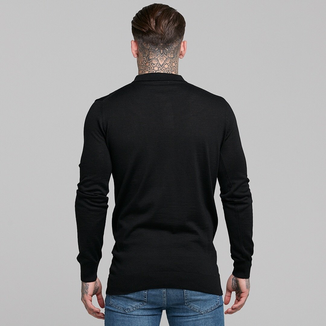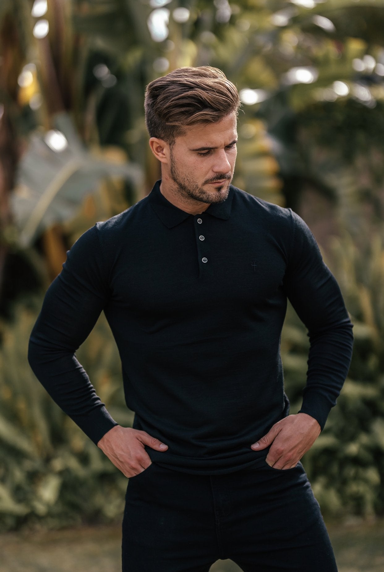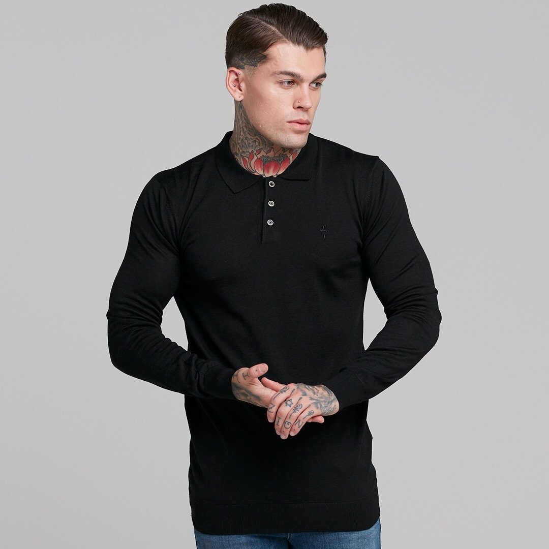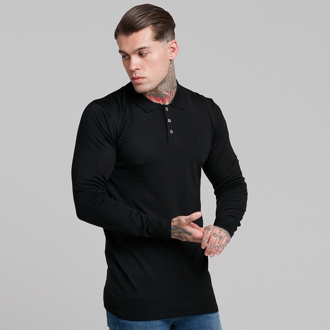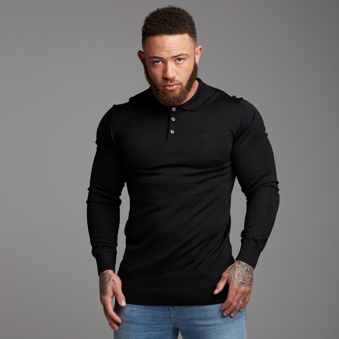 Father Sons Classic Black Knitted Long Sleeve Polo Shirt - FSH177