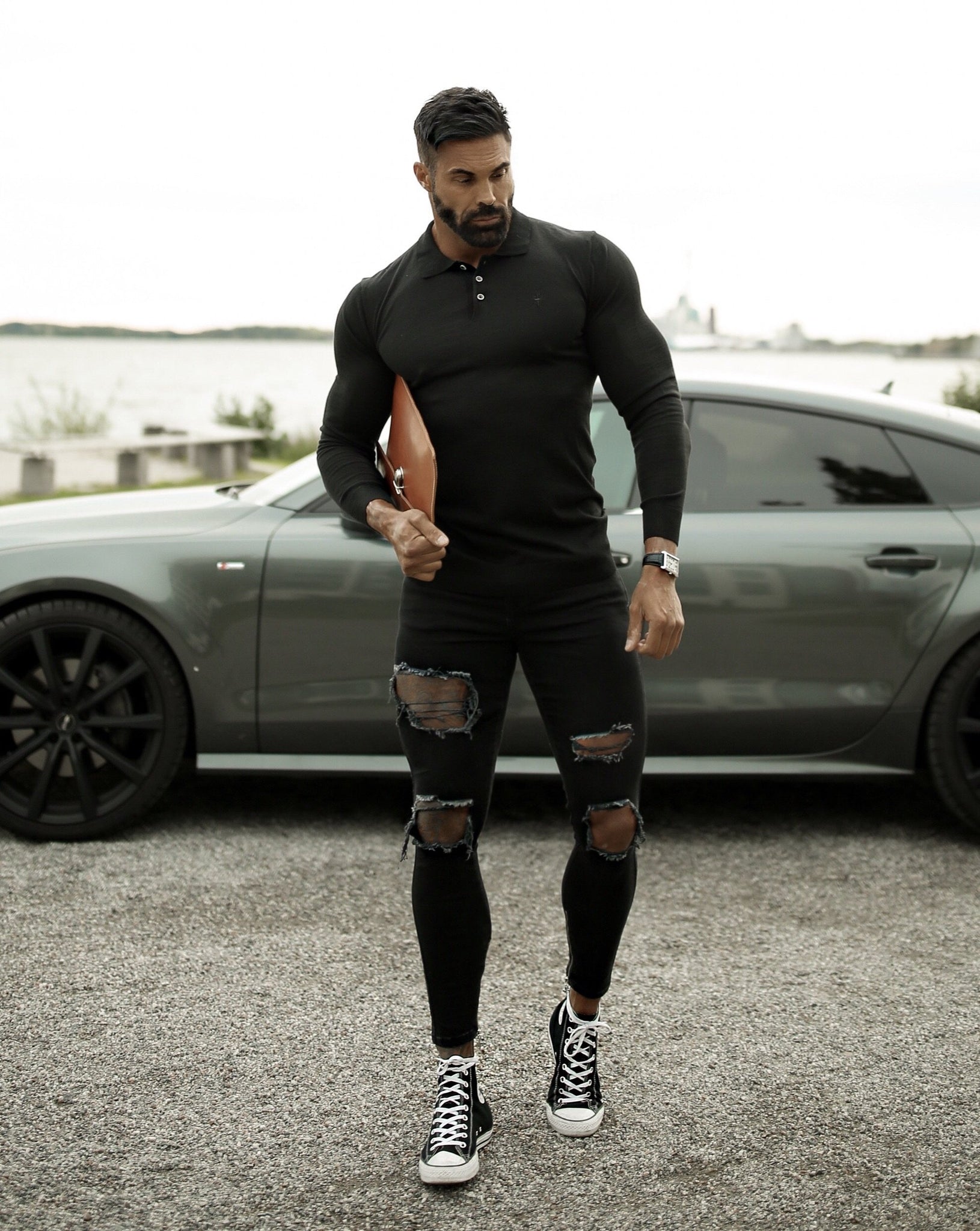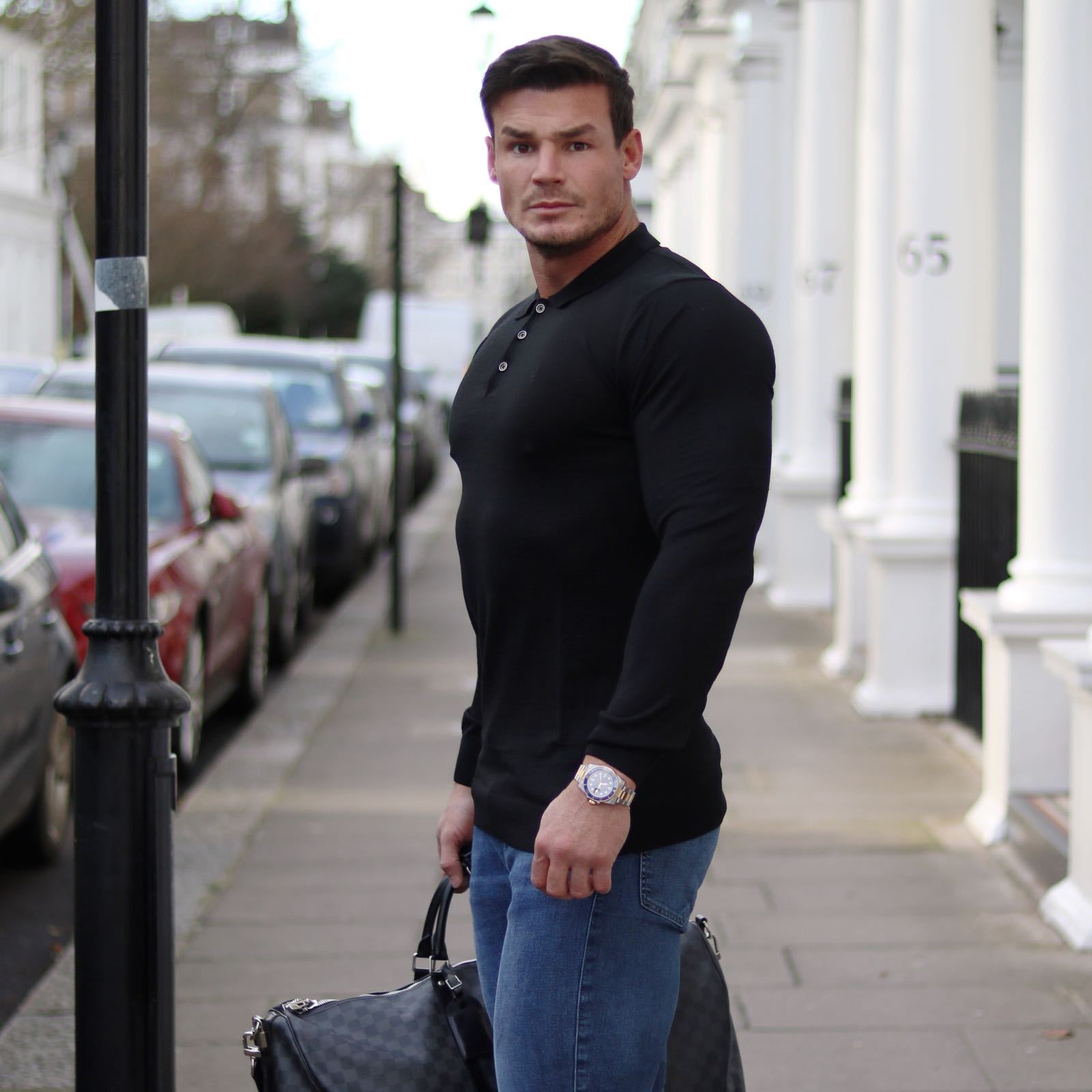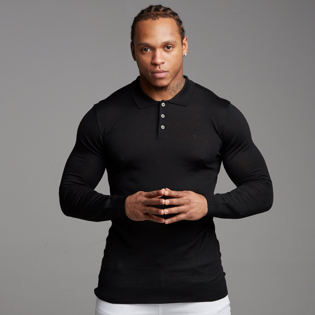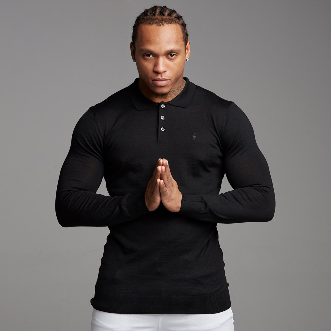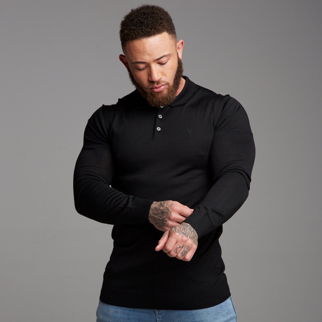 Father Sons Classic Black Knitted Long Sleeve Polo Shirt - FSH177