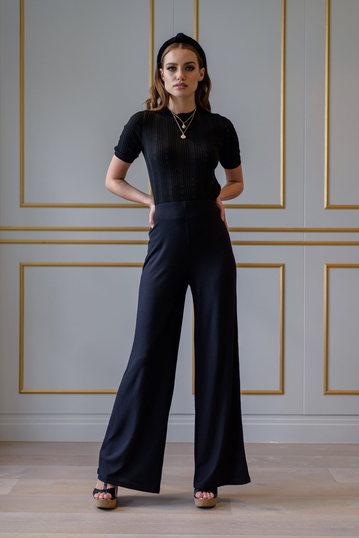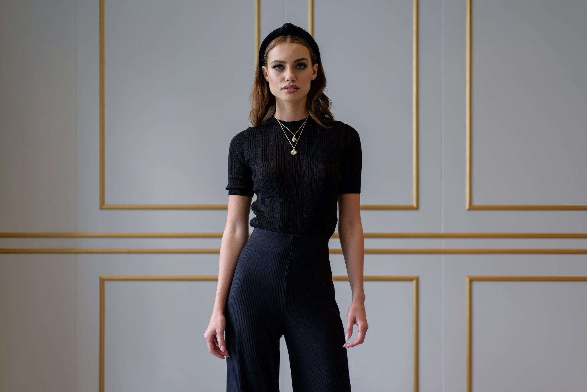 'ERIN' - Knitted Black Crochet Black Tee - CTJ006