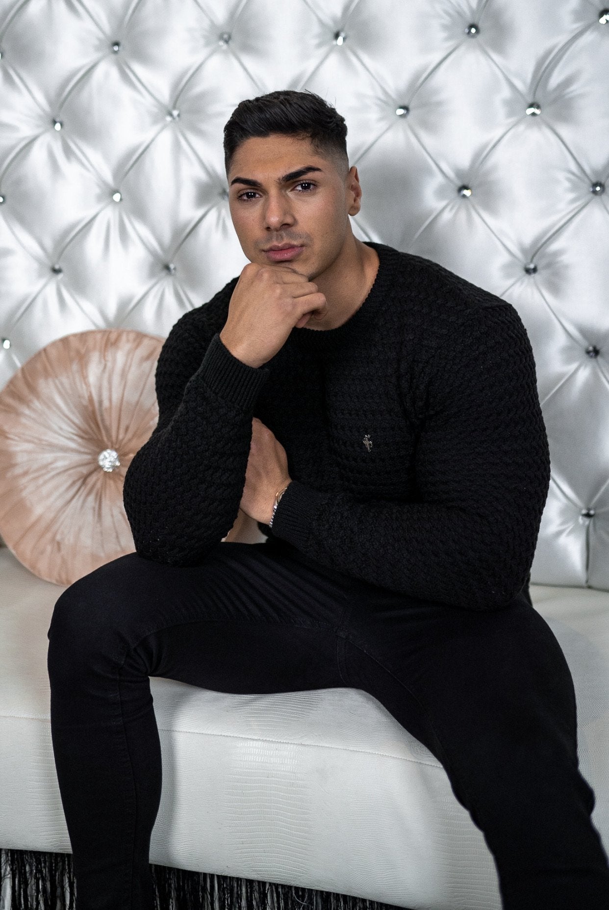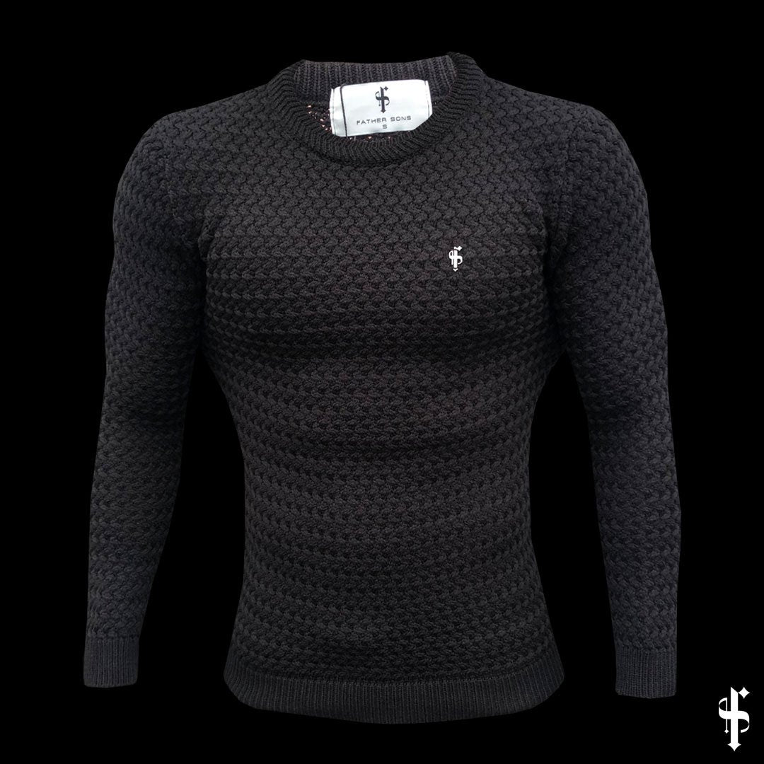 Father Sons Black Knitted Weave Super Slim Jumper With Metal Decal - FSJ014