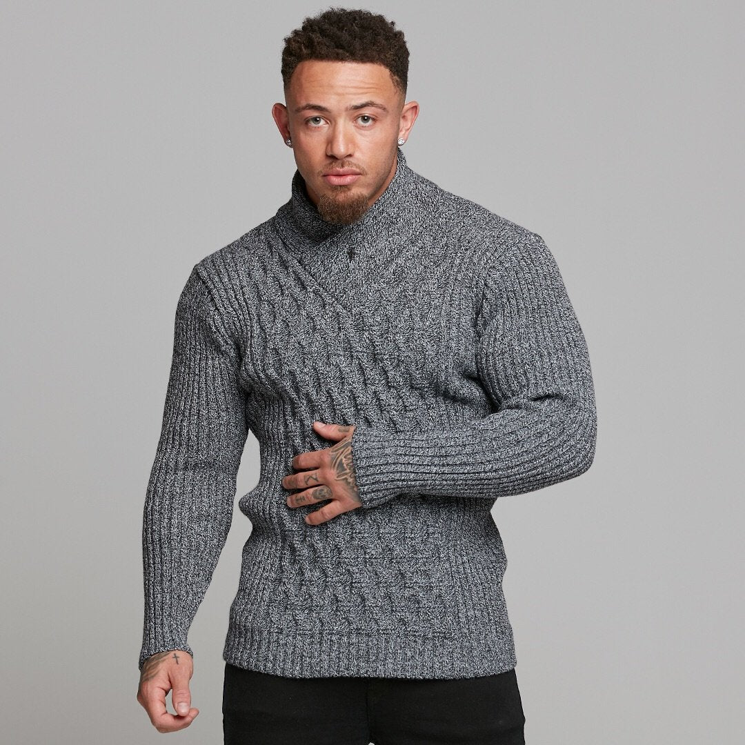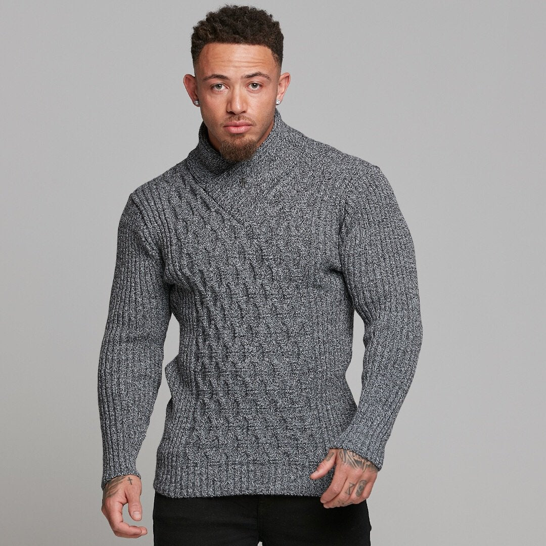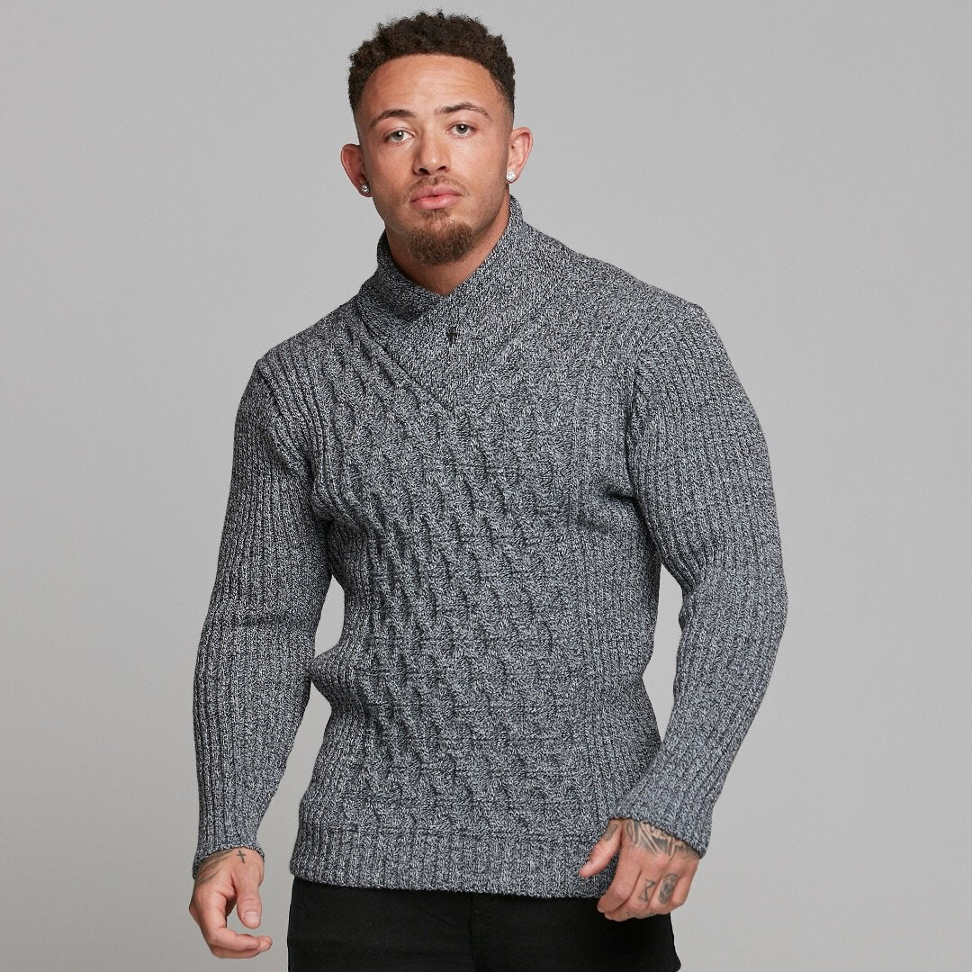 Father Sons Chunky Cable Knit Light Black and White Jumper - FSJ007