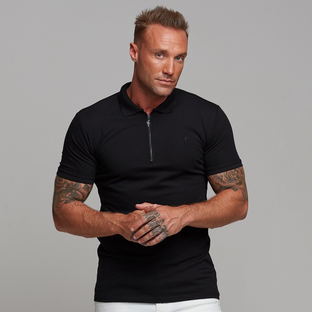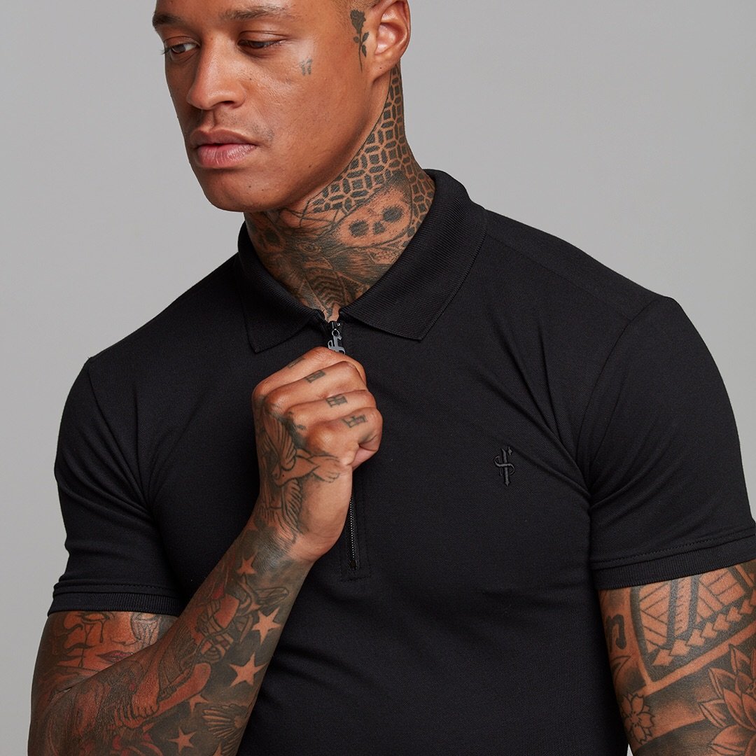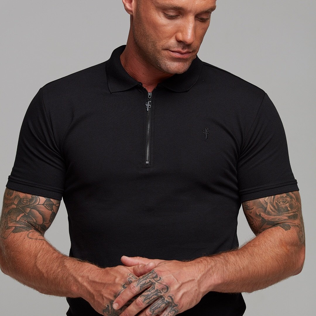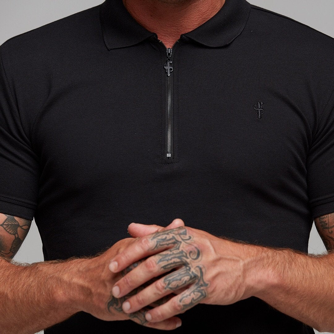 Father Sons Classic All Black Zipped Polo Shirt - FSH238