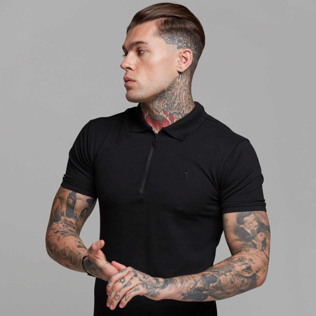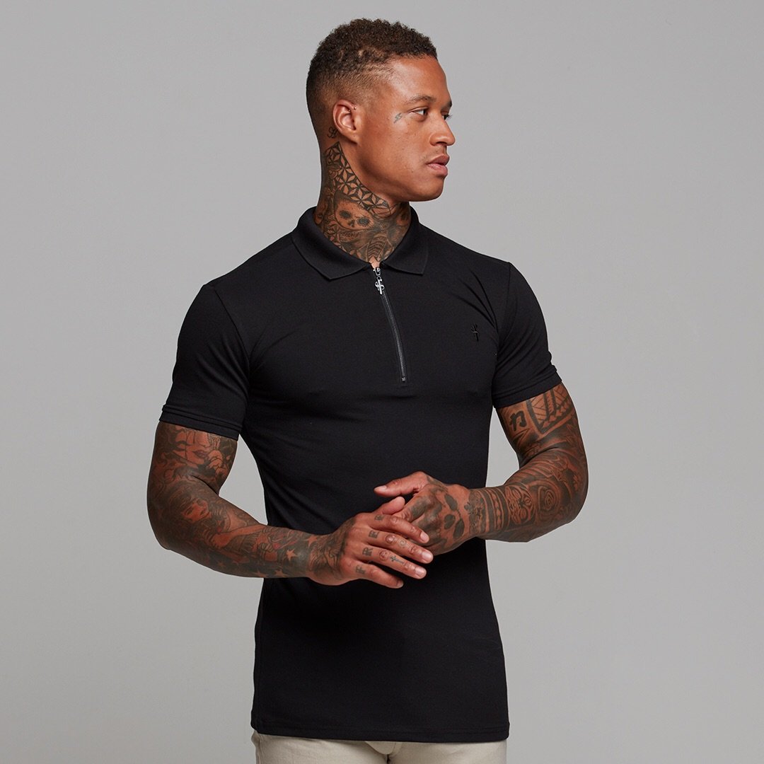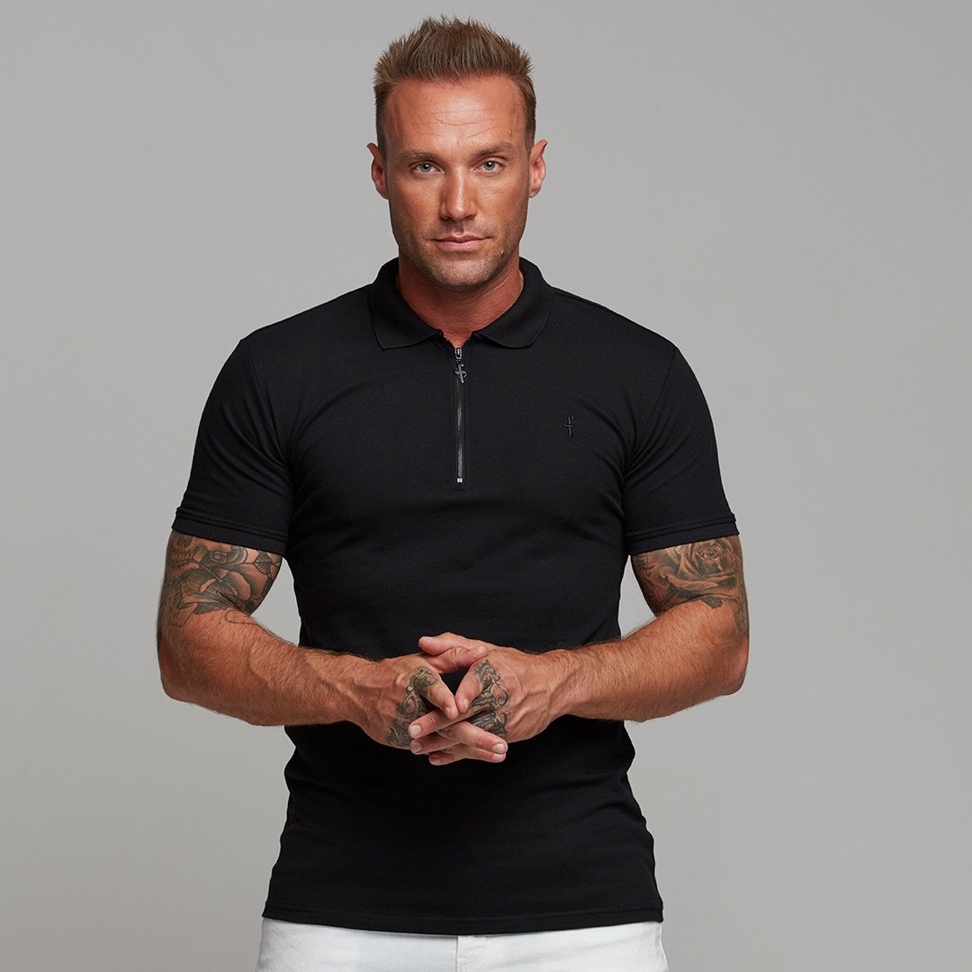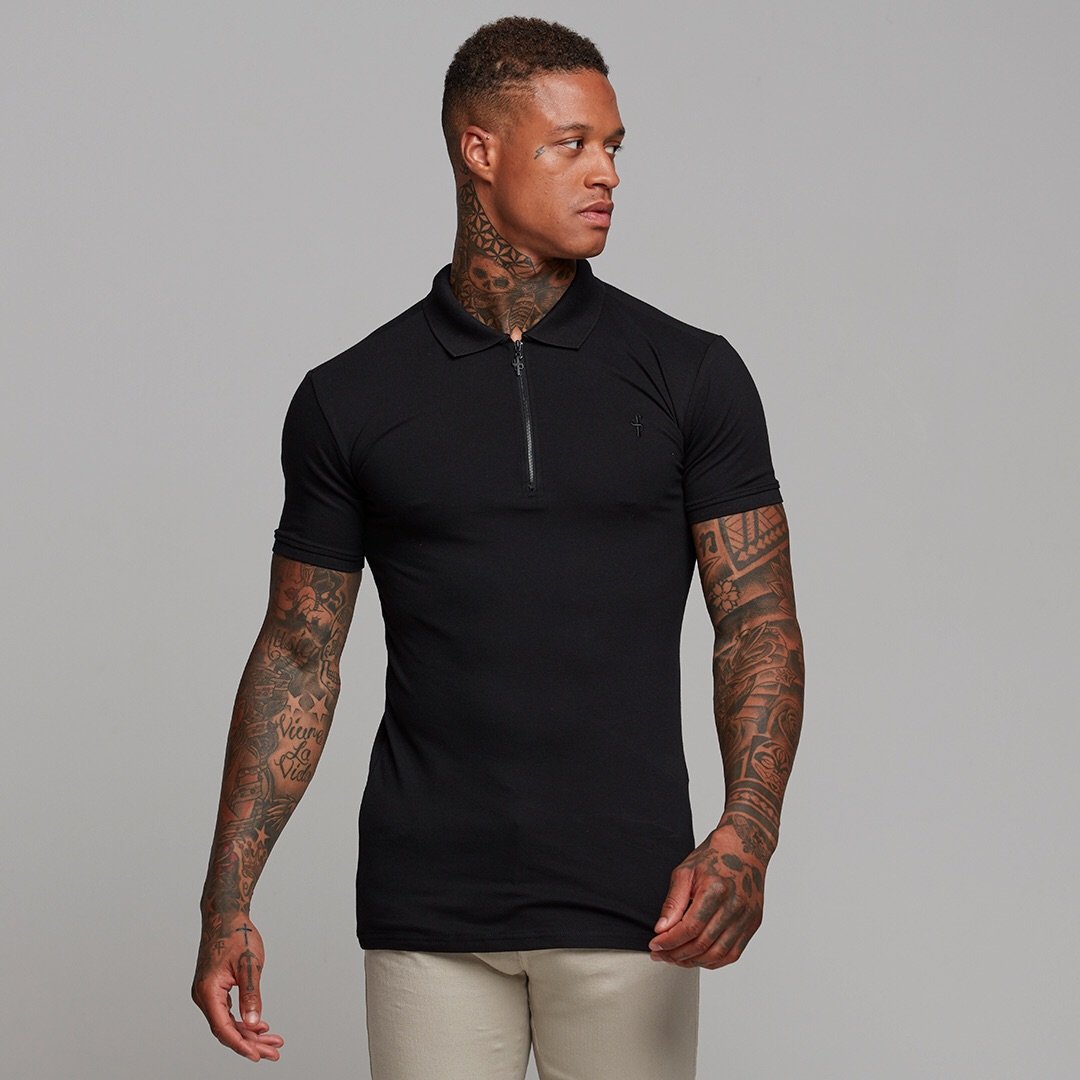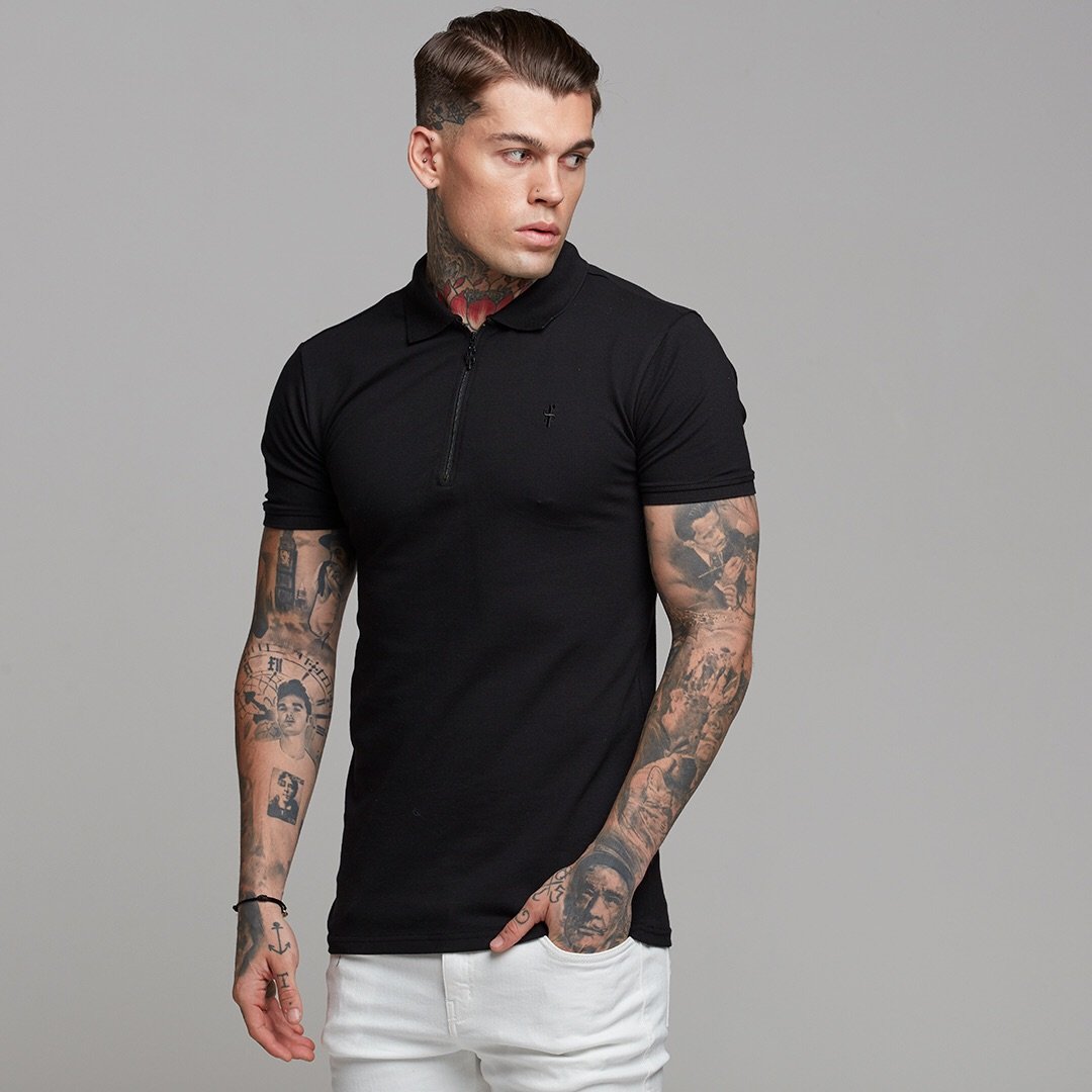 Father Sons Classic All Black Zipped Polo Shirt - FSH238