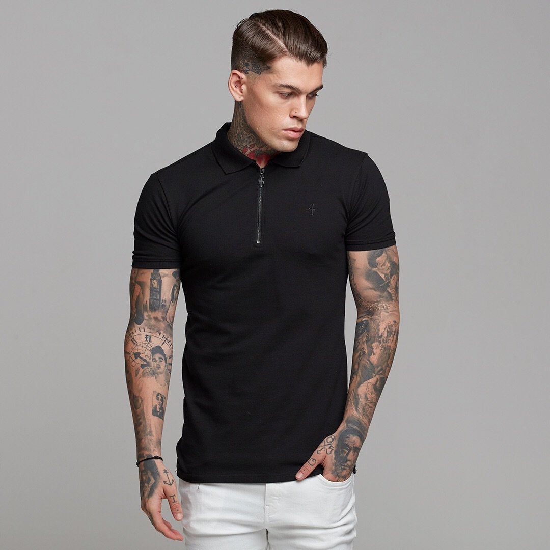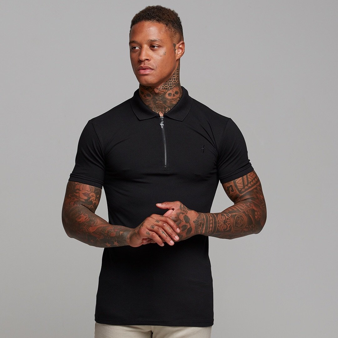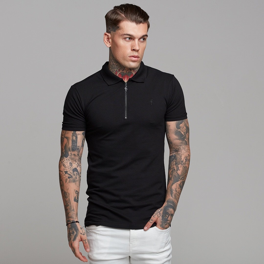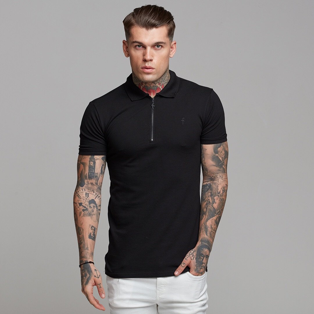 Father Sons Classic All Black Zipped Polo Shirt - FSH238
