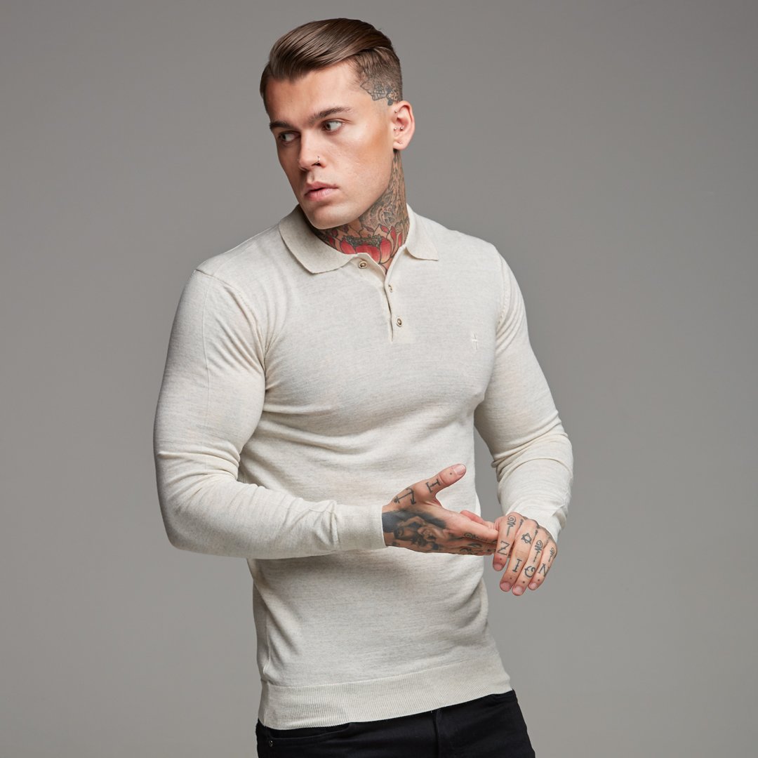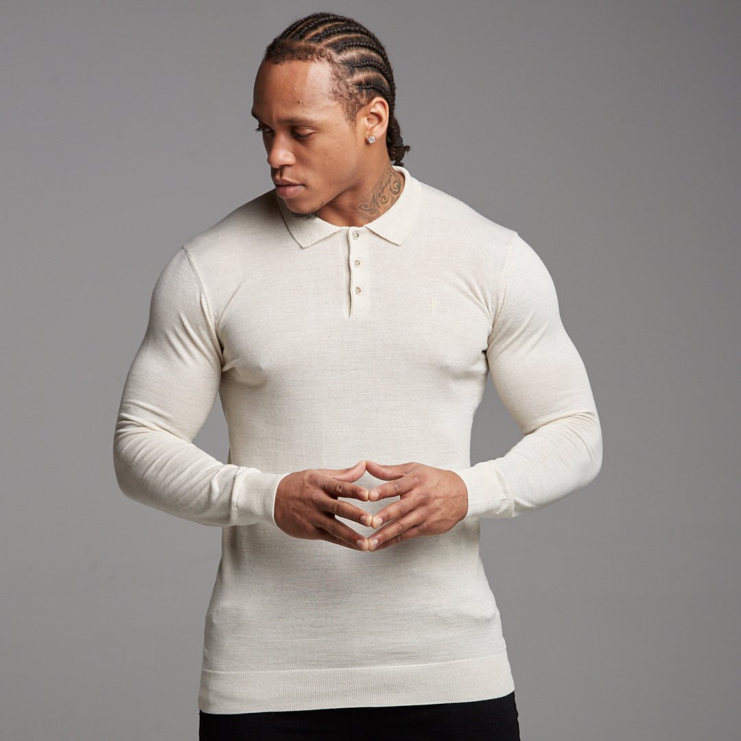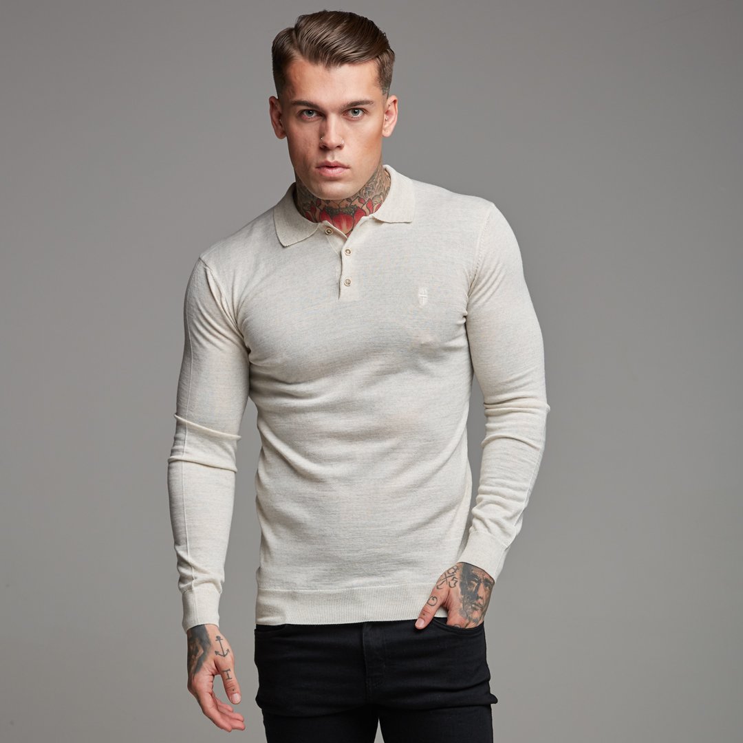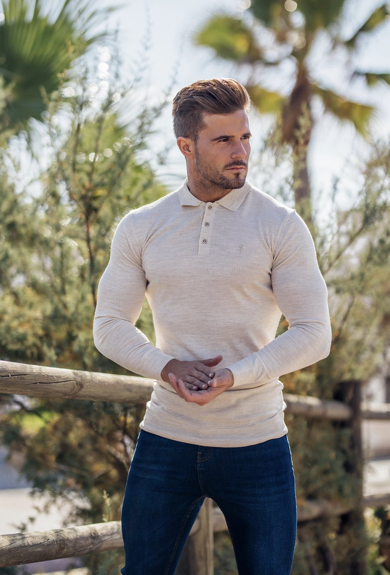 Father Sons Classic Beige Knitted Long Sleeve Polo Shirt - FSH176