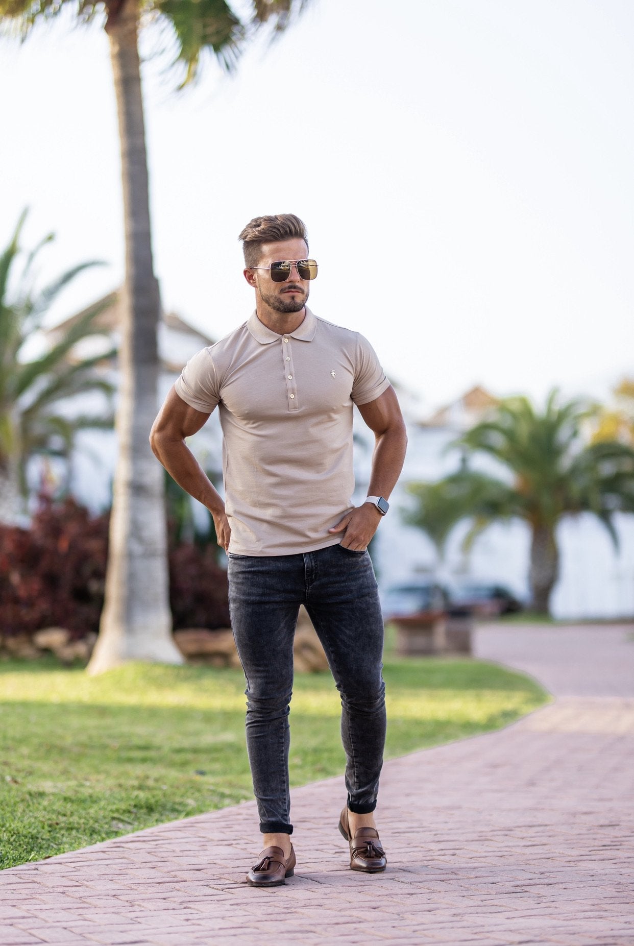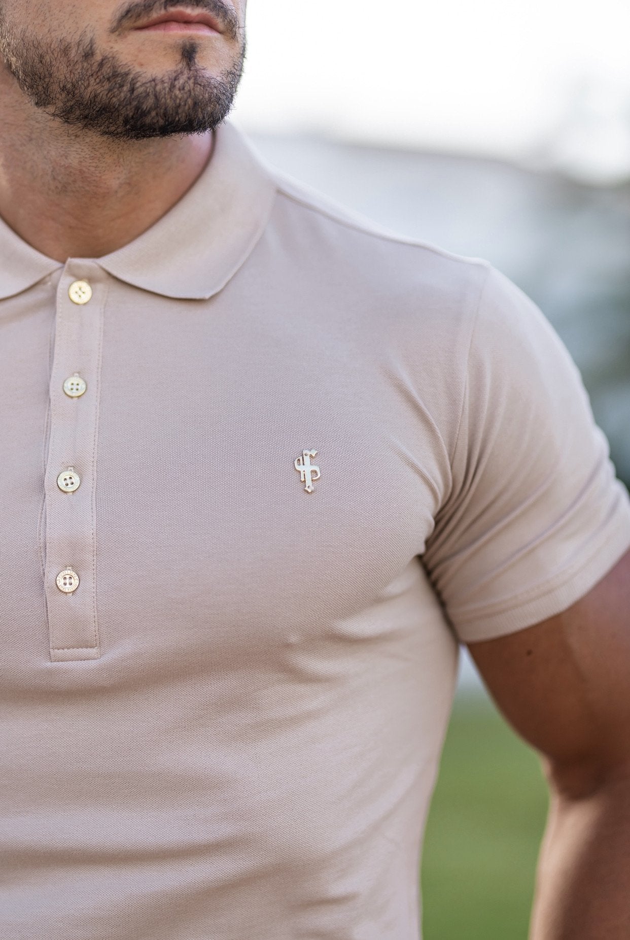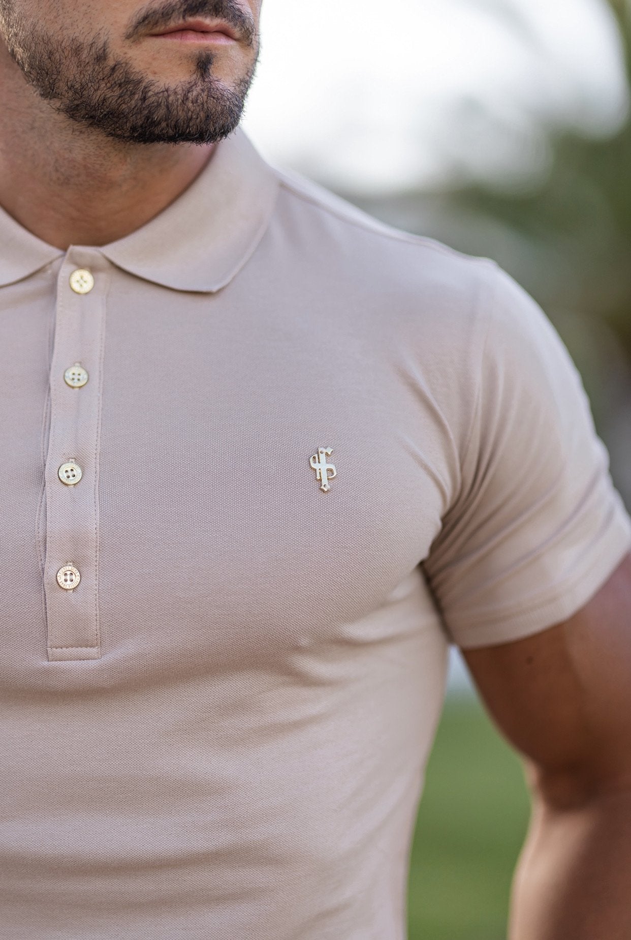 Father Sons Classic Beige Polo Shirt with Metal Emblem Decal & Buttons - FSH457