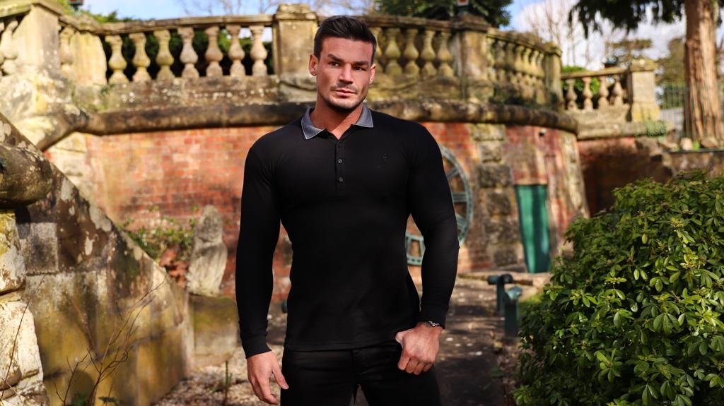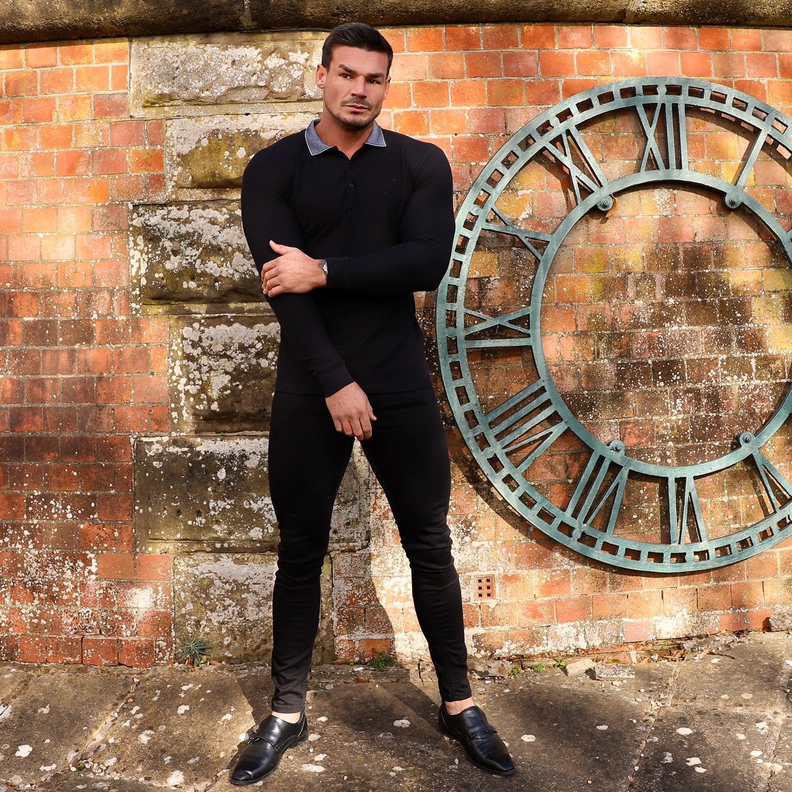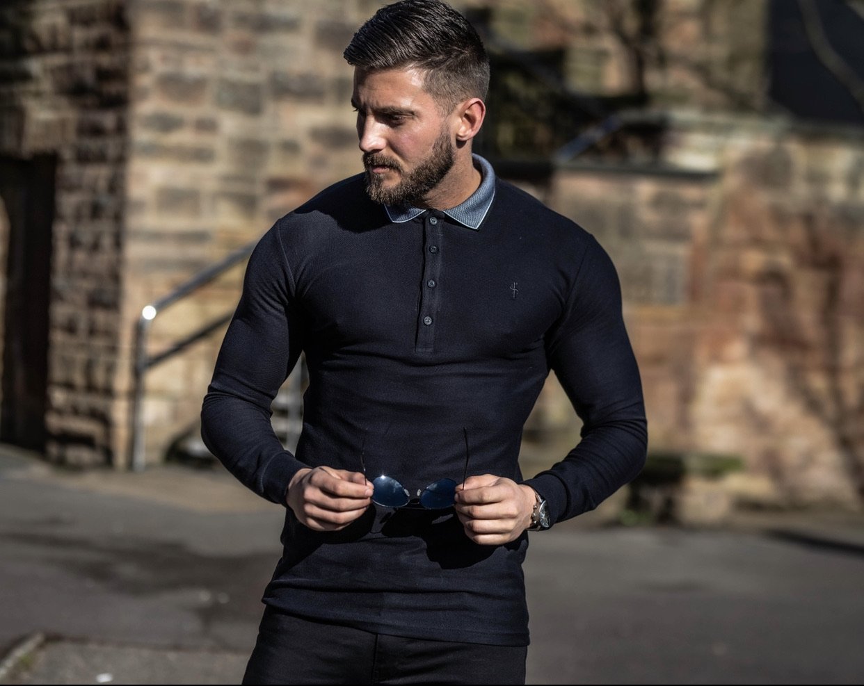 Father Sons Classic Black Honeycomb Textured Polo Shirt With Contrast Long Sleeve - FSH421