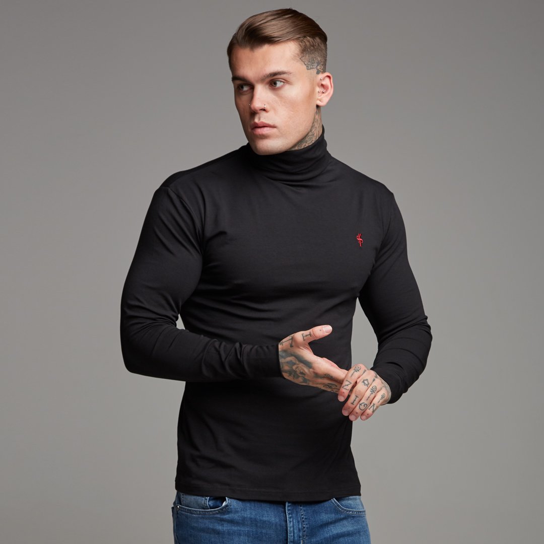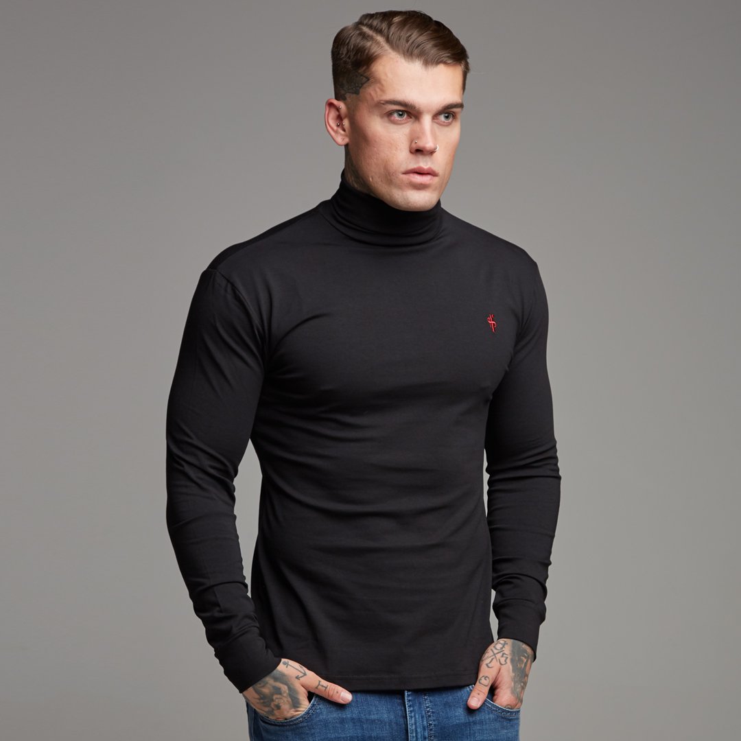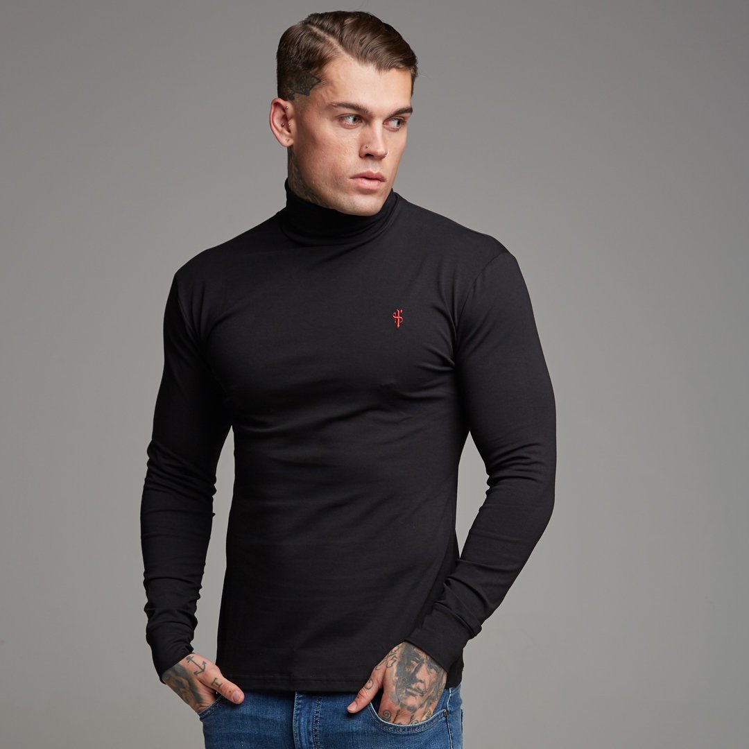 Father Sons Classic Black Stretch Roll Neck (Red Emblem) - FSH090