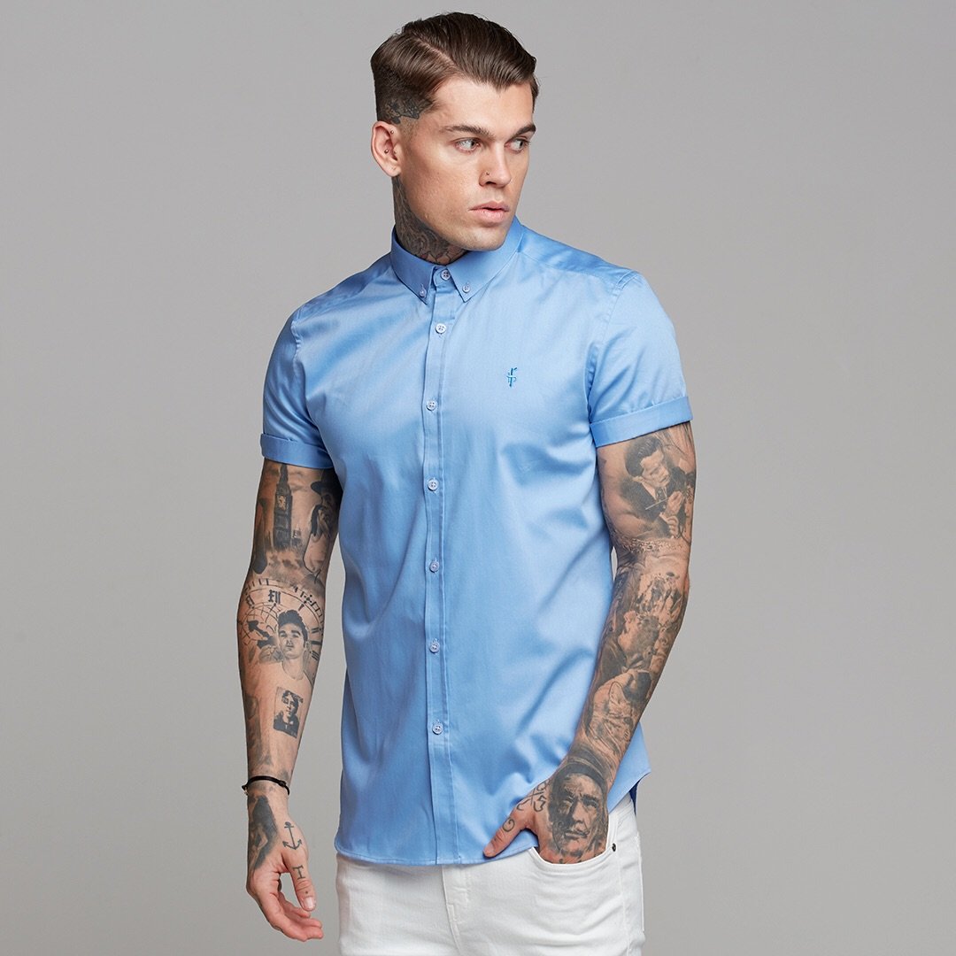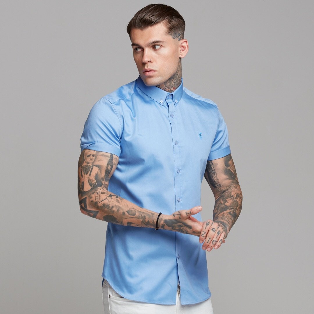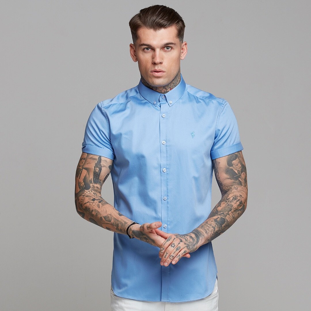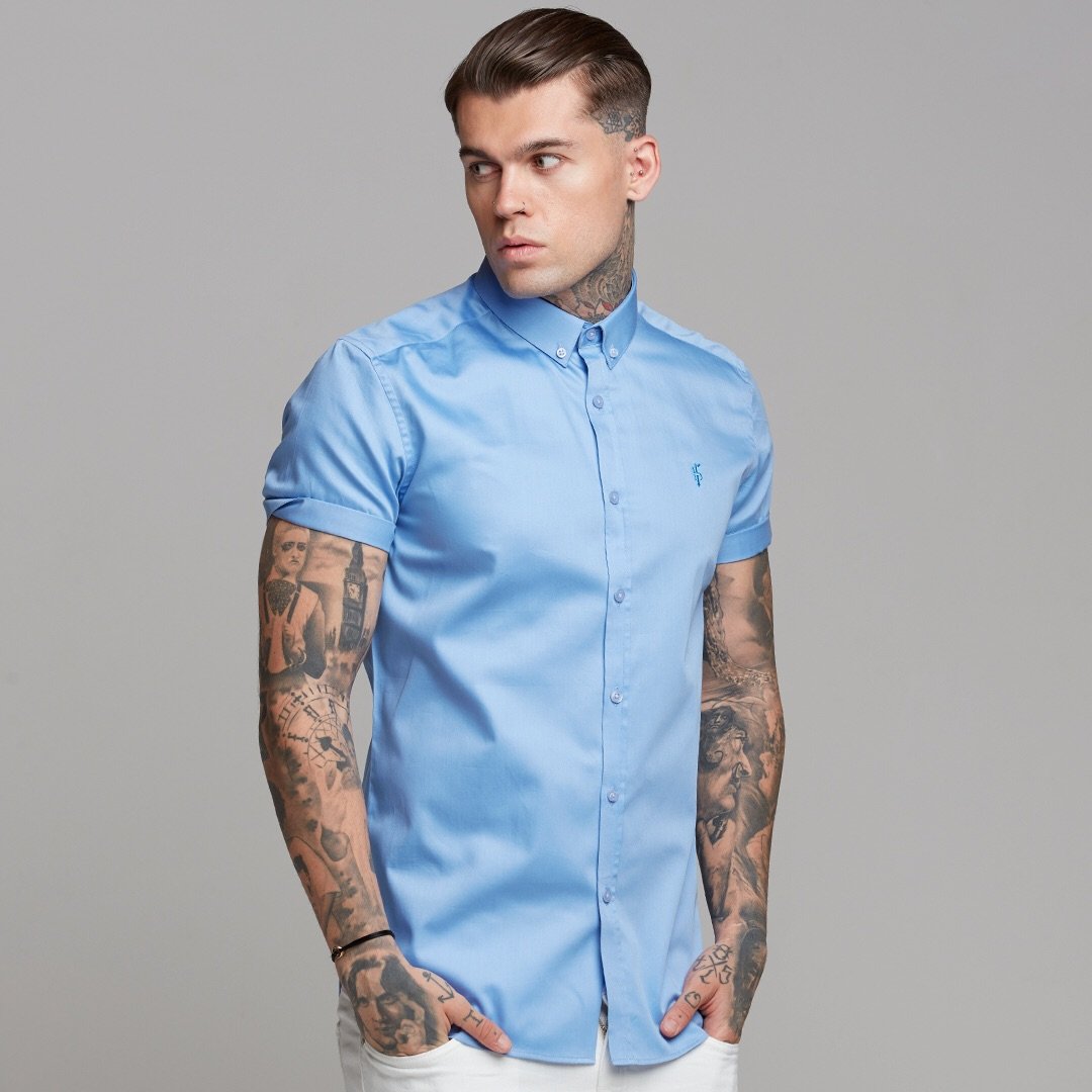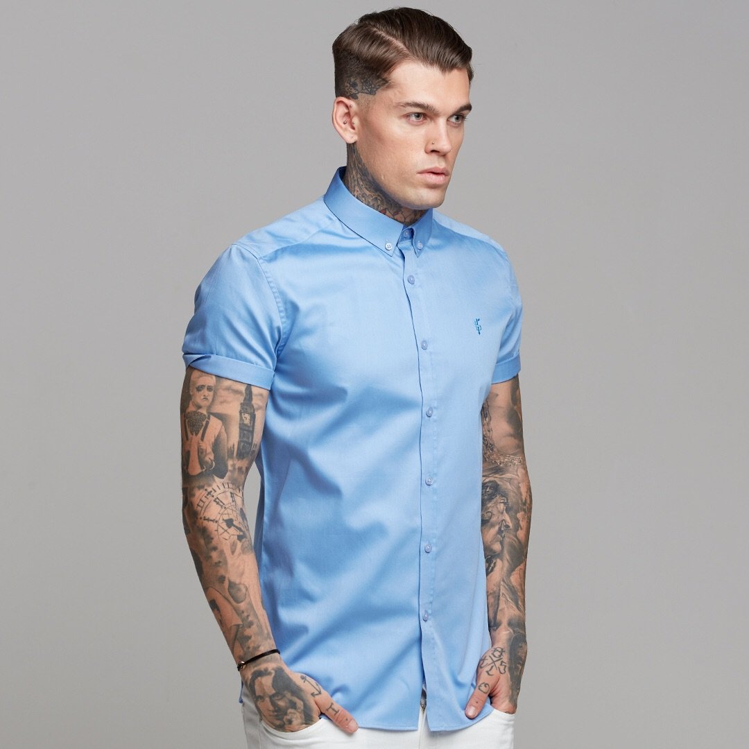 Father Sons Classic Button Down Light Blue Luxe Egyptian Cotton Short Sleeve - FS496