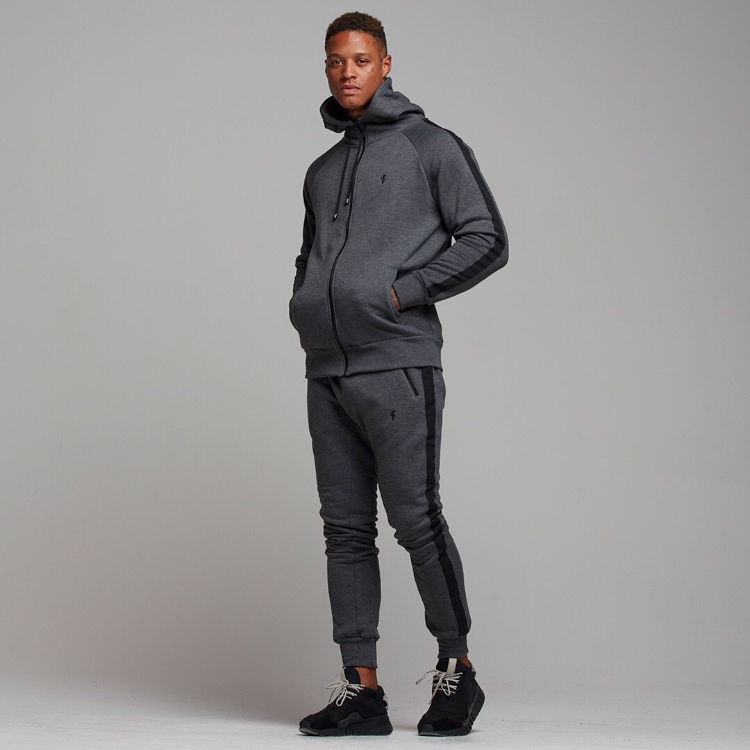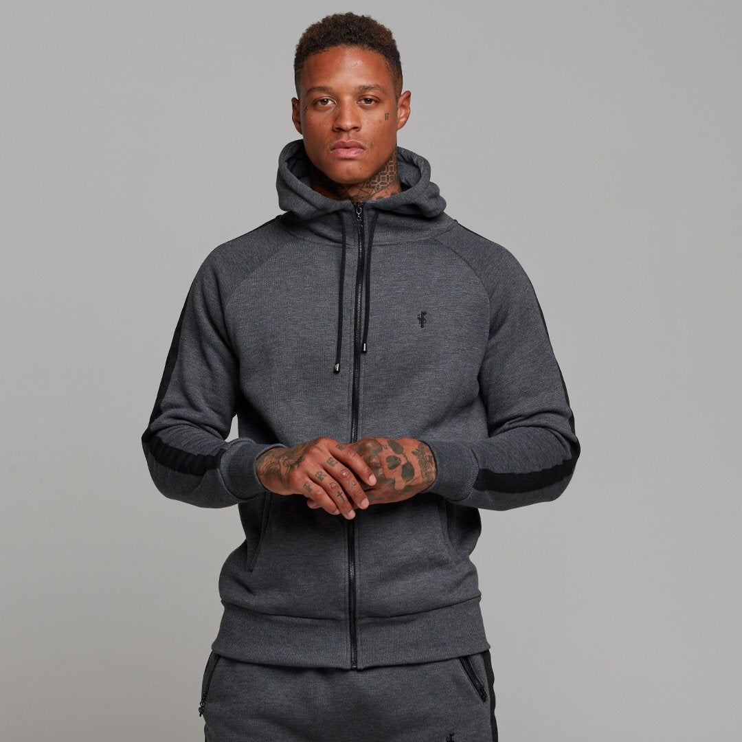 Father Sons Classic Charcoal with Black Striped Raglan Hoodie Top - FSH252