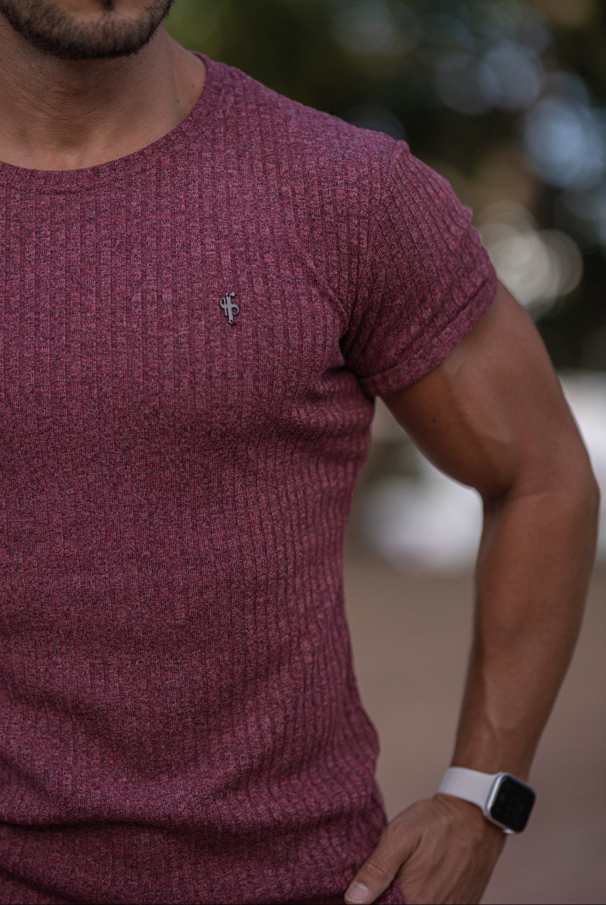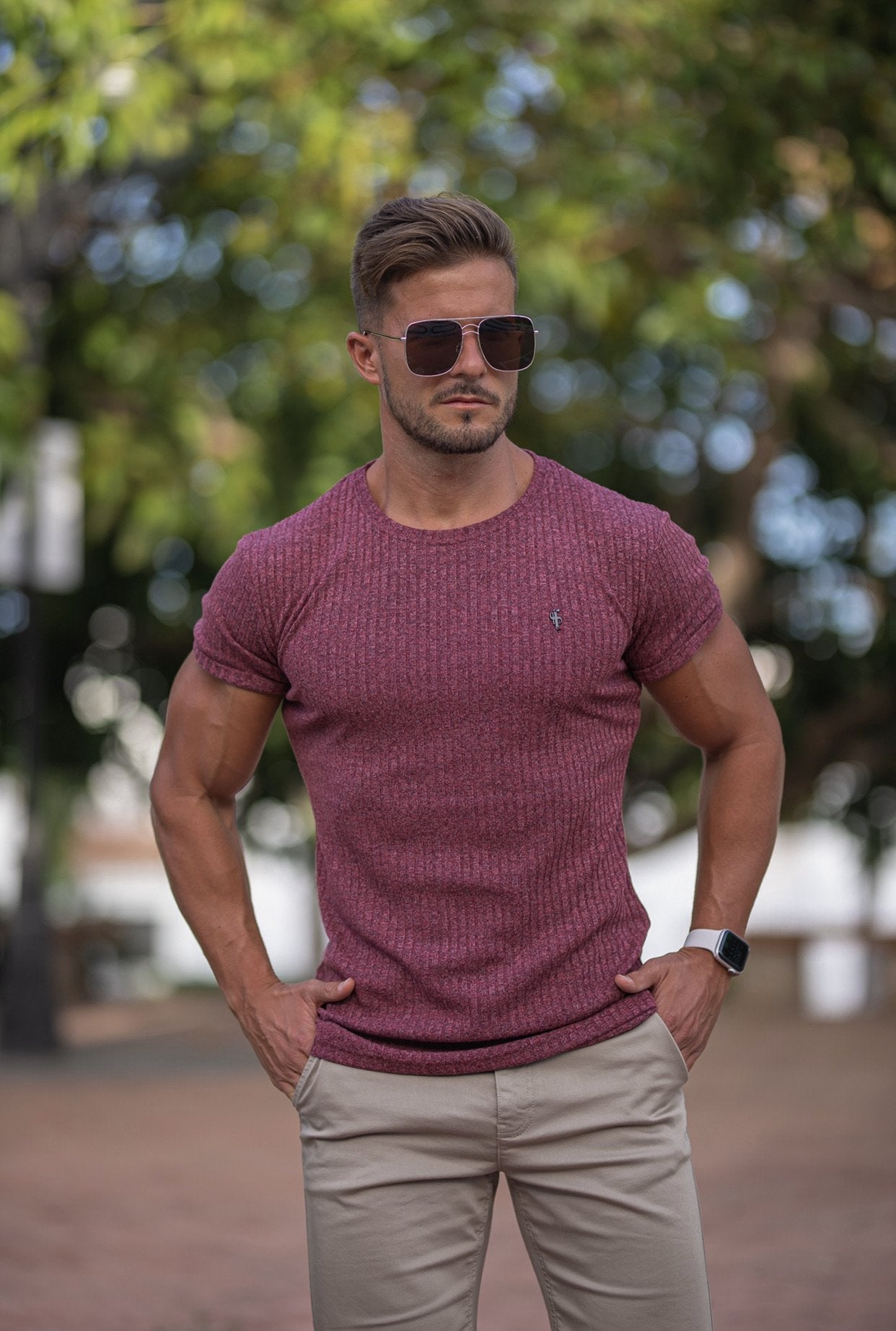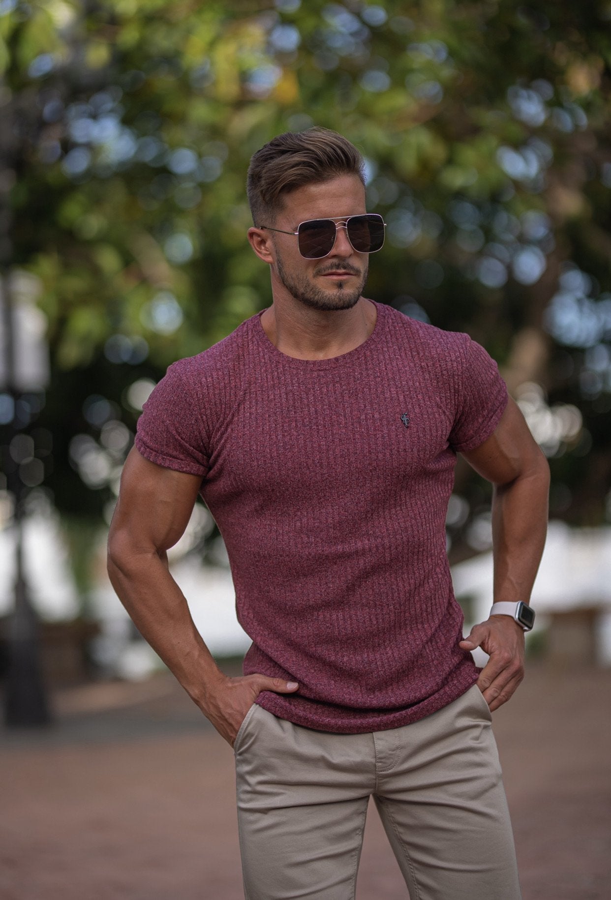 Father Sons Classic Claret Ribbed Crew Black Metal Emblem - FSH506