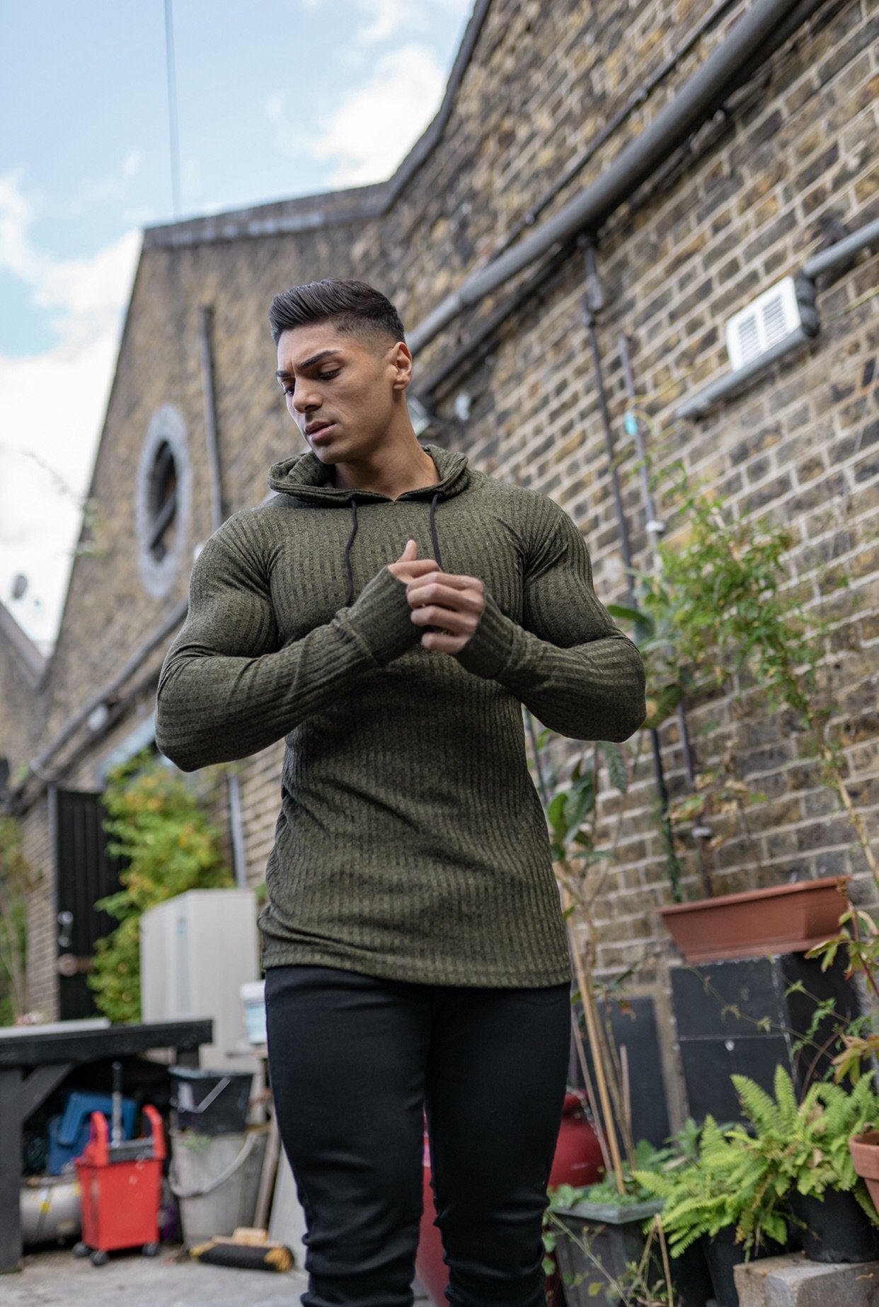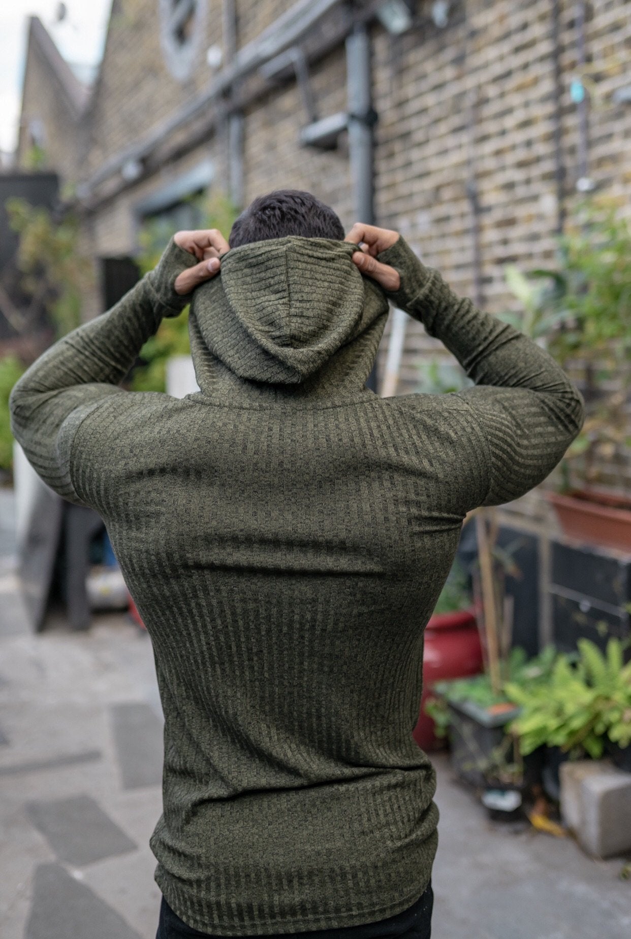 Father Sons Classic Khaki Ribbed Knit Hoodie Jumper - FSH221