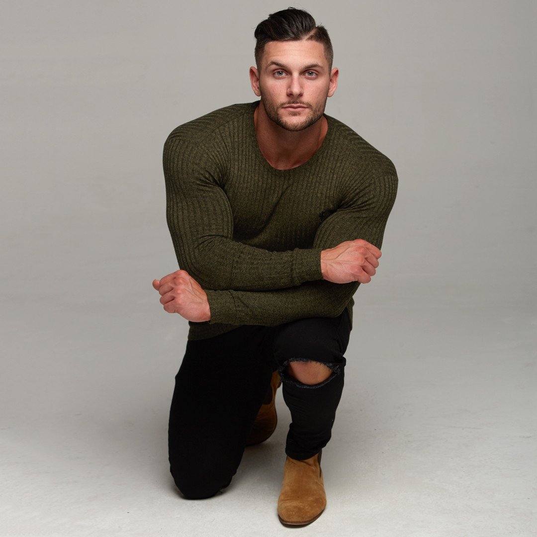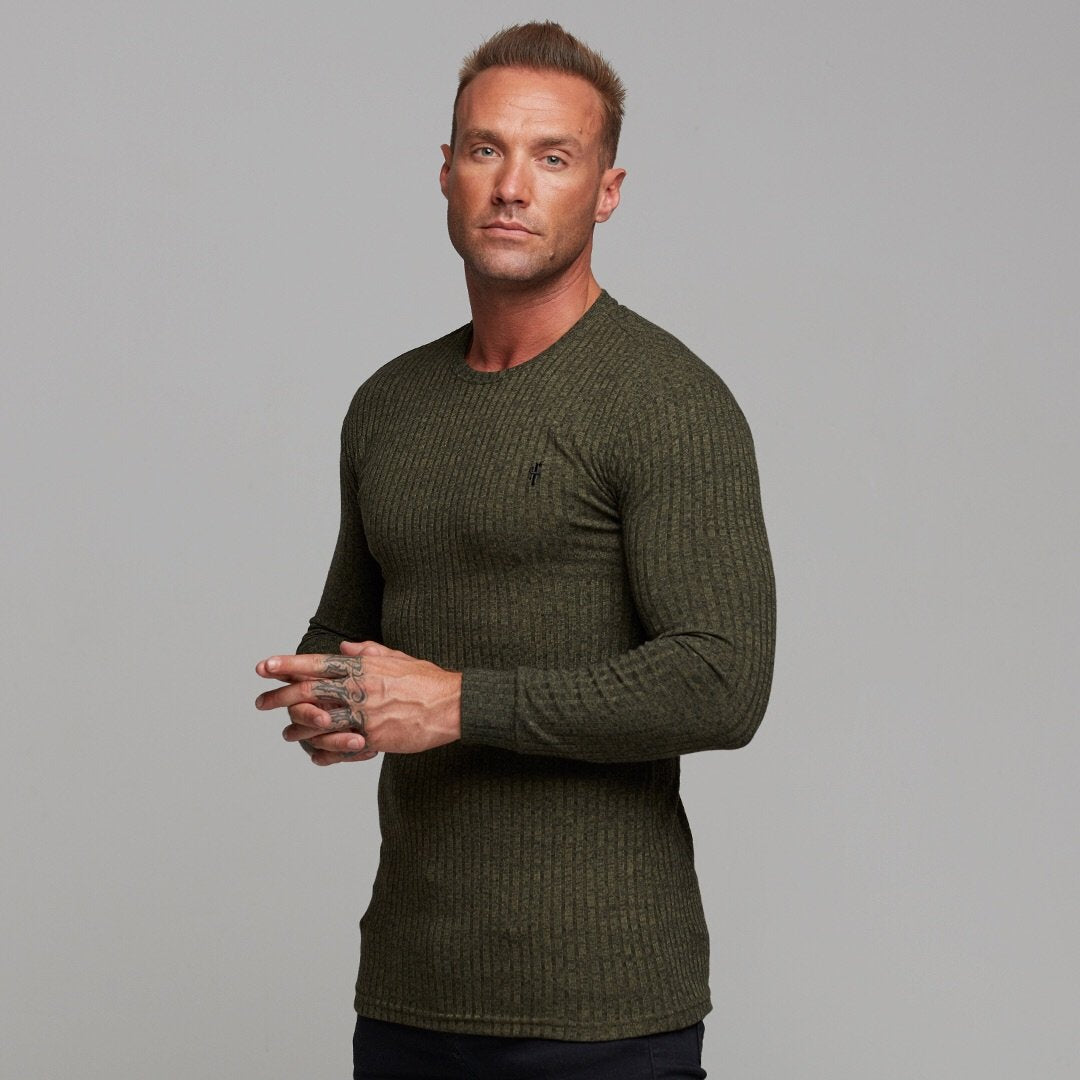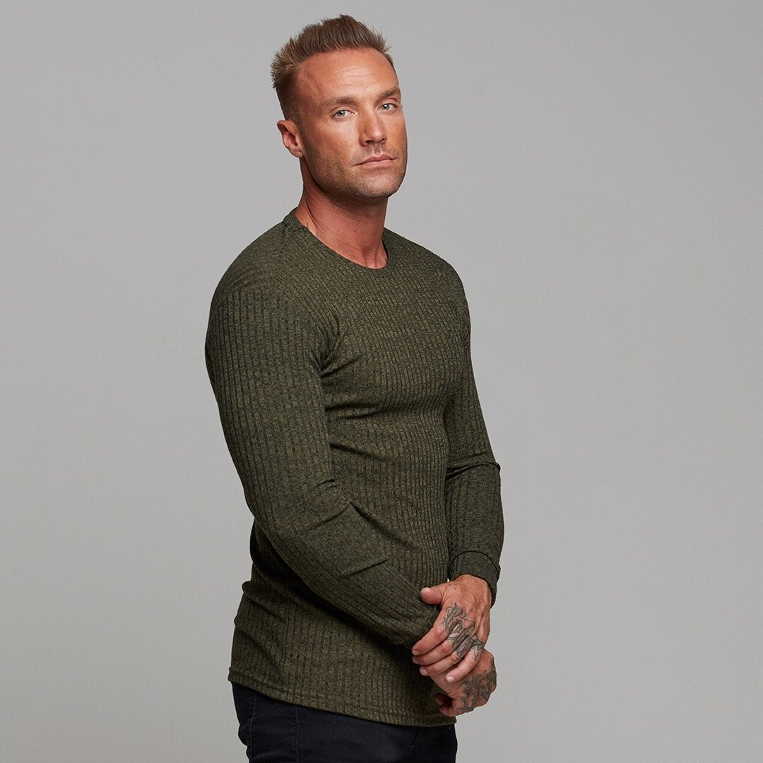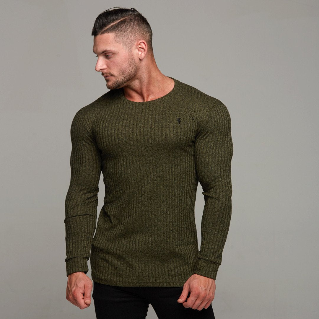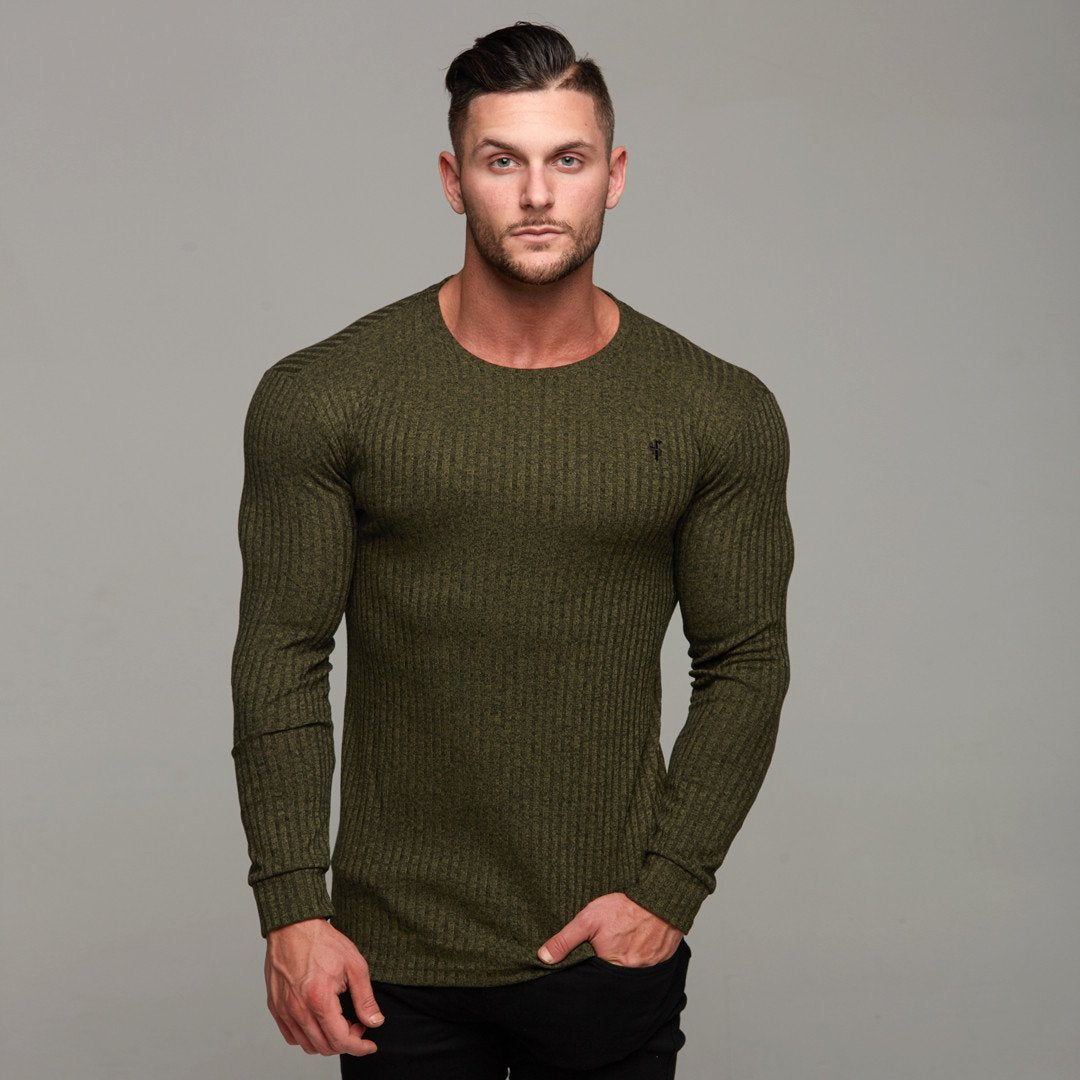Father Sons Classic Khaki Ribbed Knit Super Slim Crew - FSH115