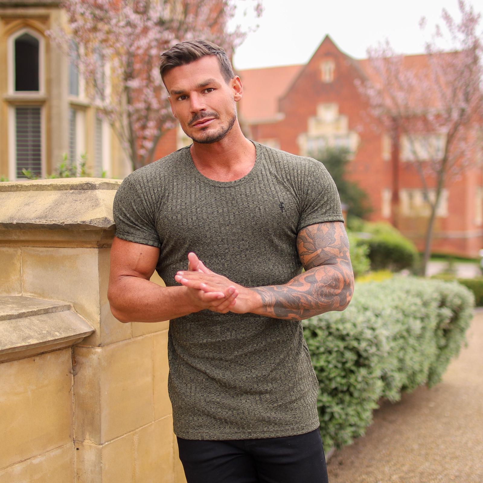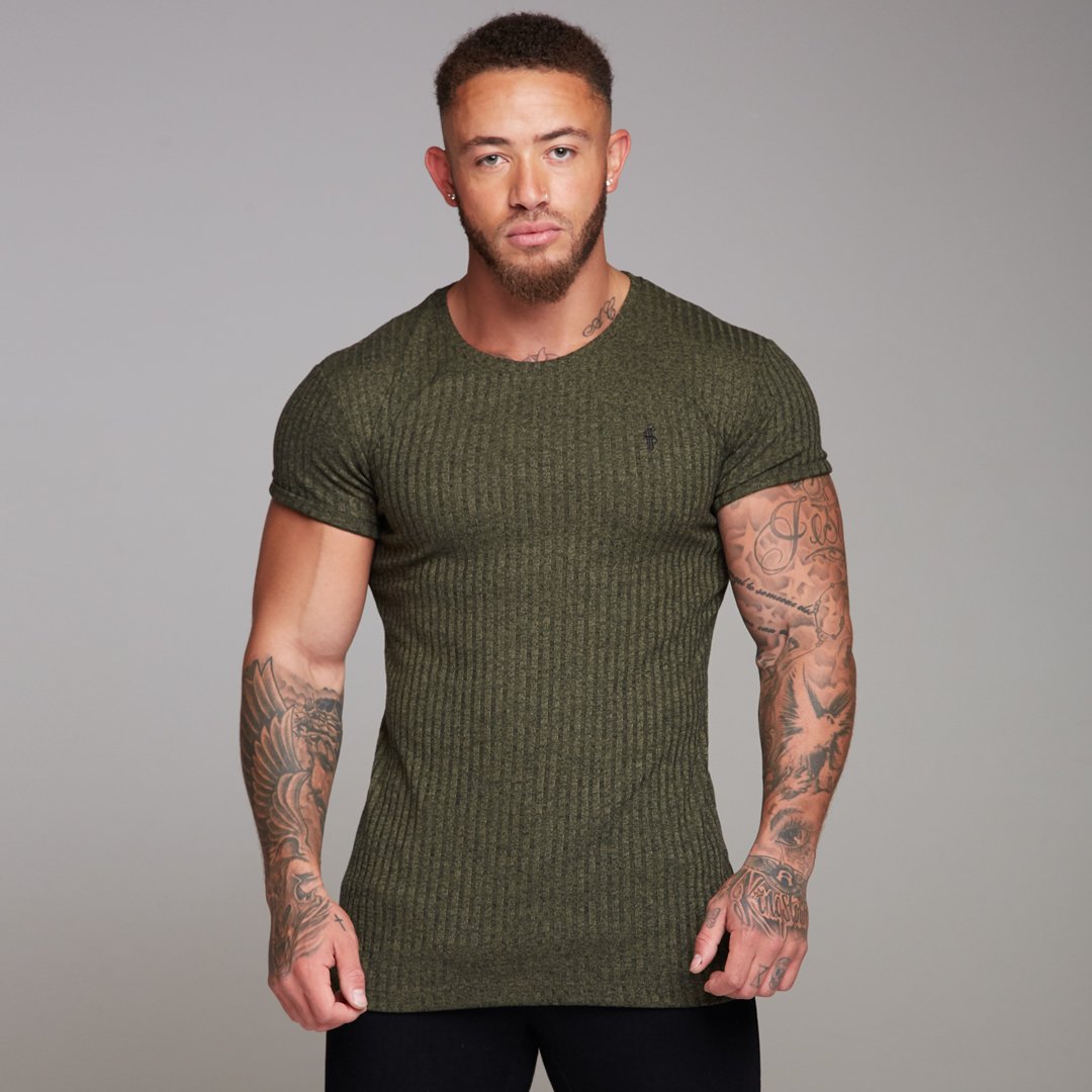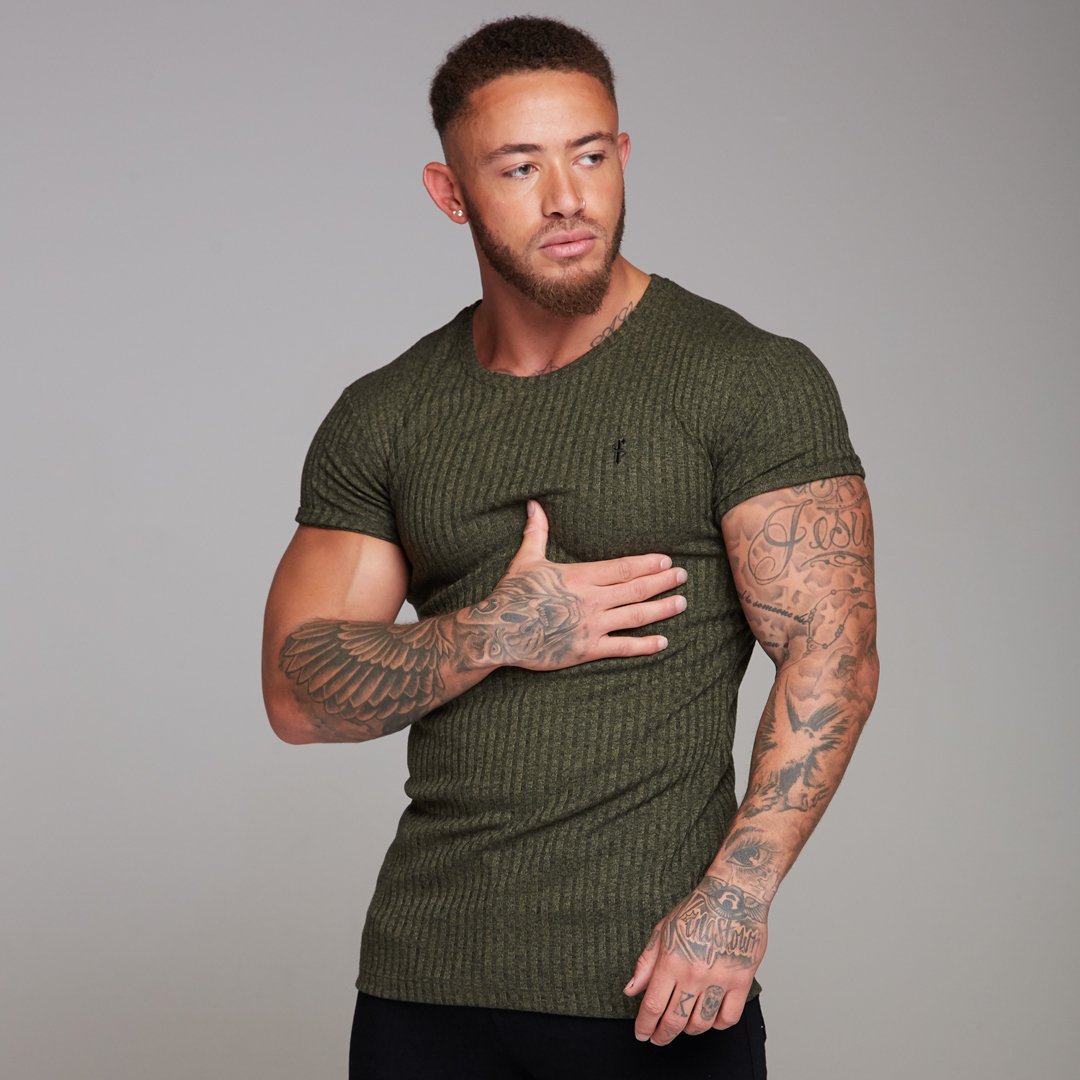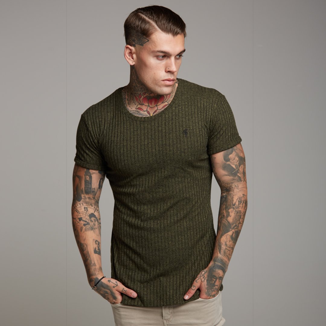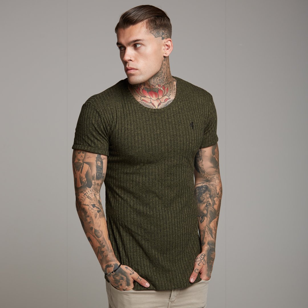 Father Sons Classic Khaki Ribbed Knit Super Slim Long Line Crew - FSH172