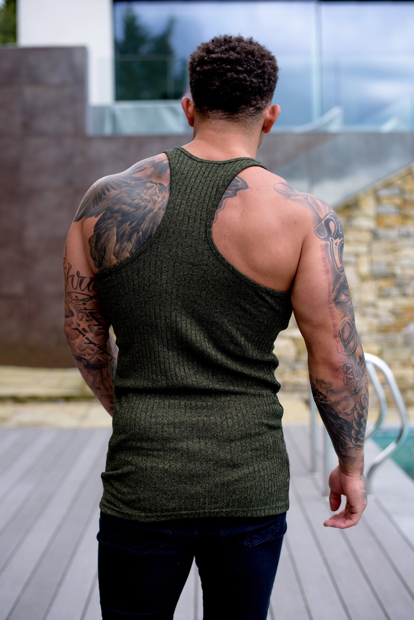 Father Sons Classic Khaki Ribbed Knit Super Slim Vest - FSH335