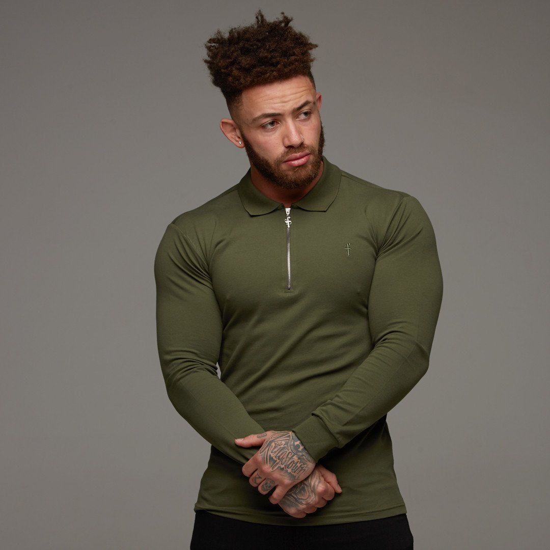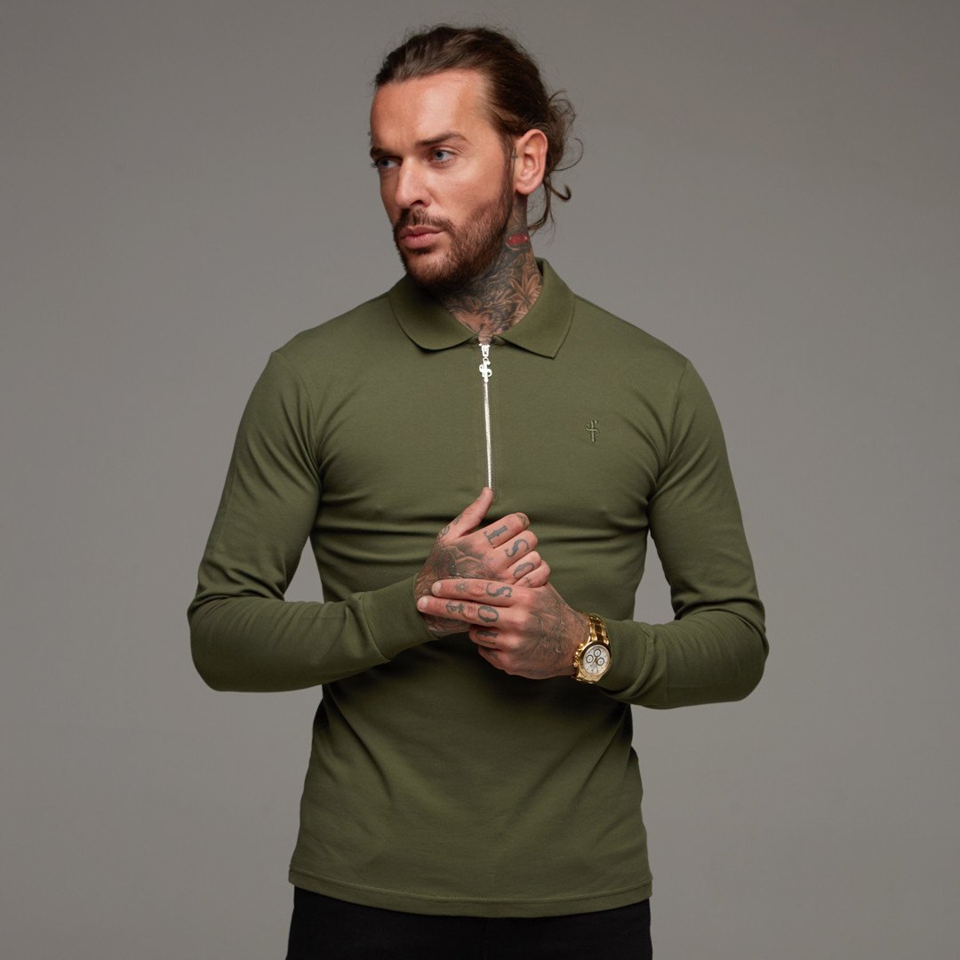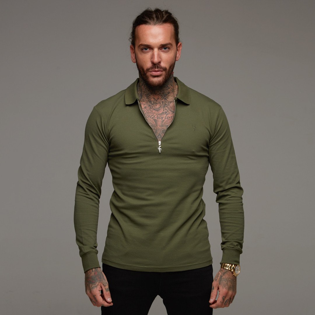 Father Sons Classic Khaki Zipped Polo Long Sleeve Shirt - FSH023