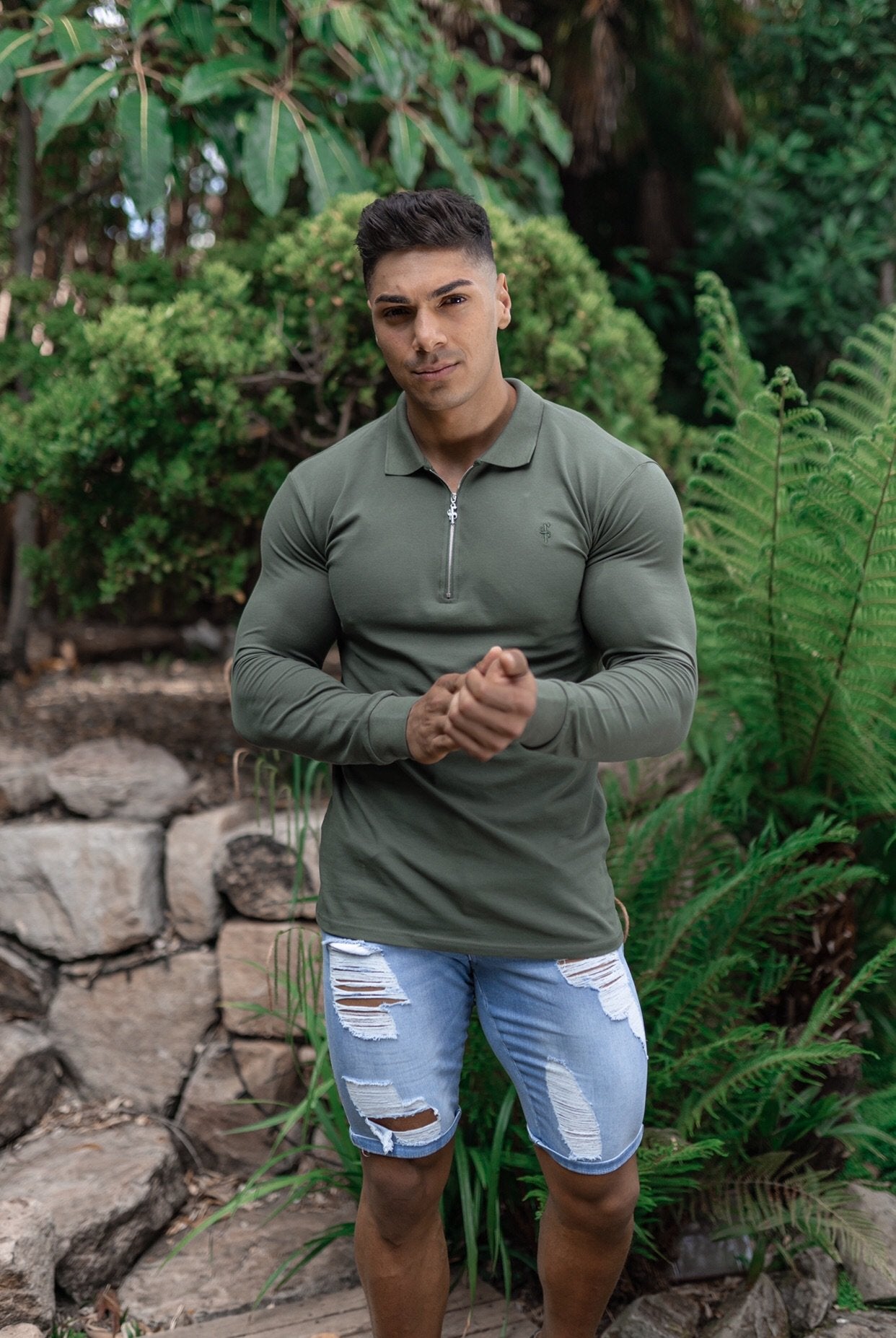 Father Sons Classic Khaki Zipped Polo Long Sleeve Shirt - FSH023