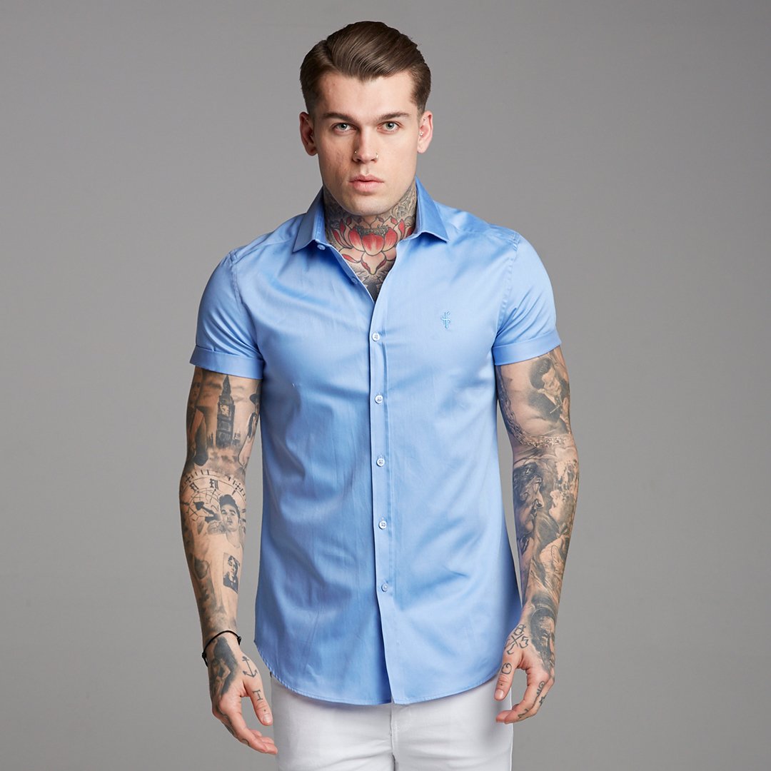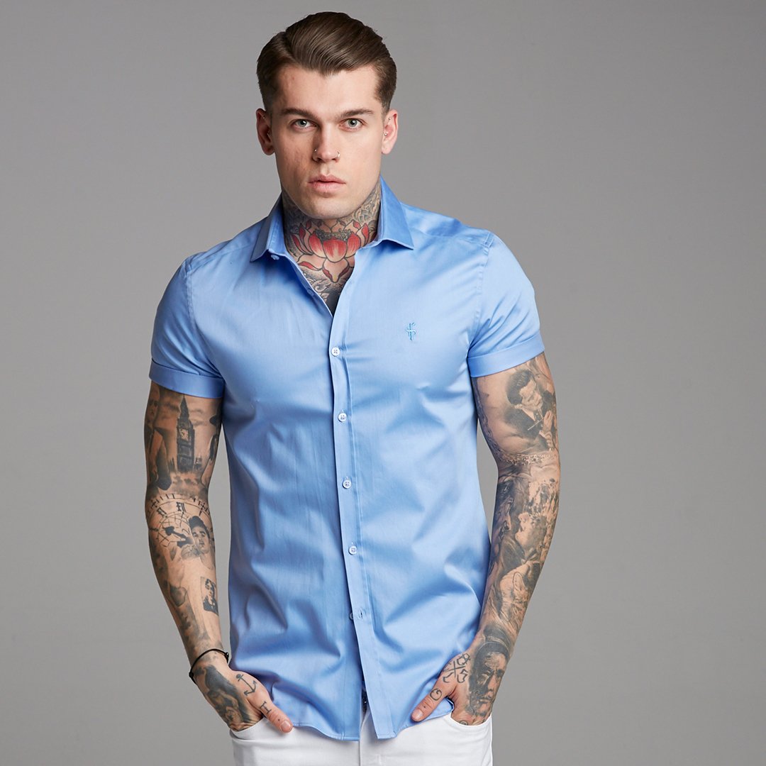 Father Sons Classic Light Blue Luxe Egyptian Cotton Short Sleeve - FS373