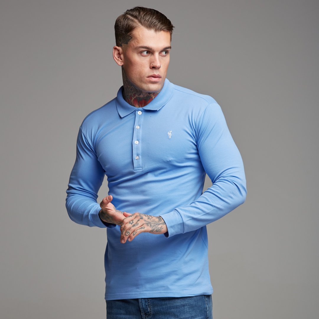 Father Sons Classic Light Blue Polo Long Sleeve Shirt - FSH161