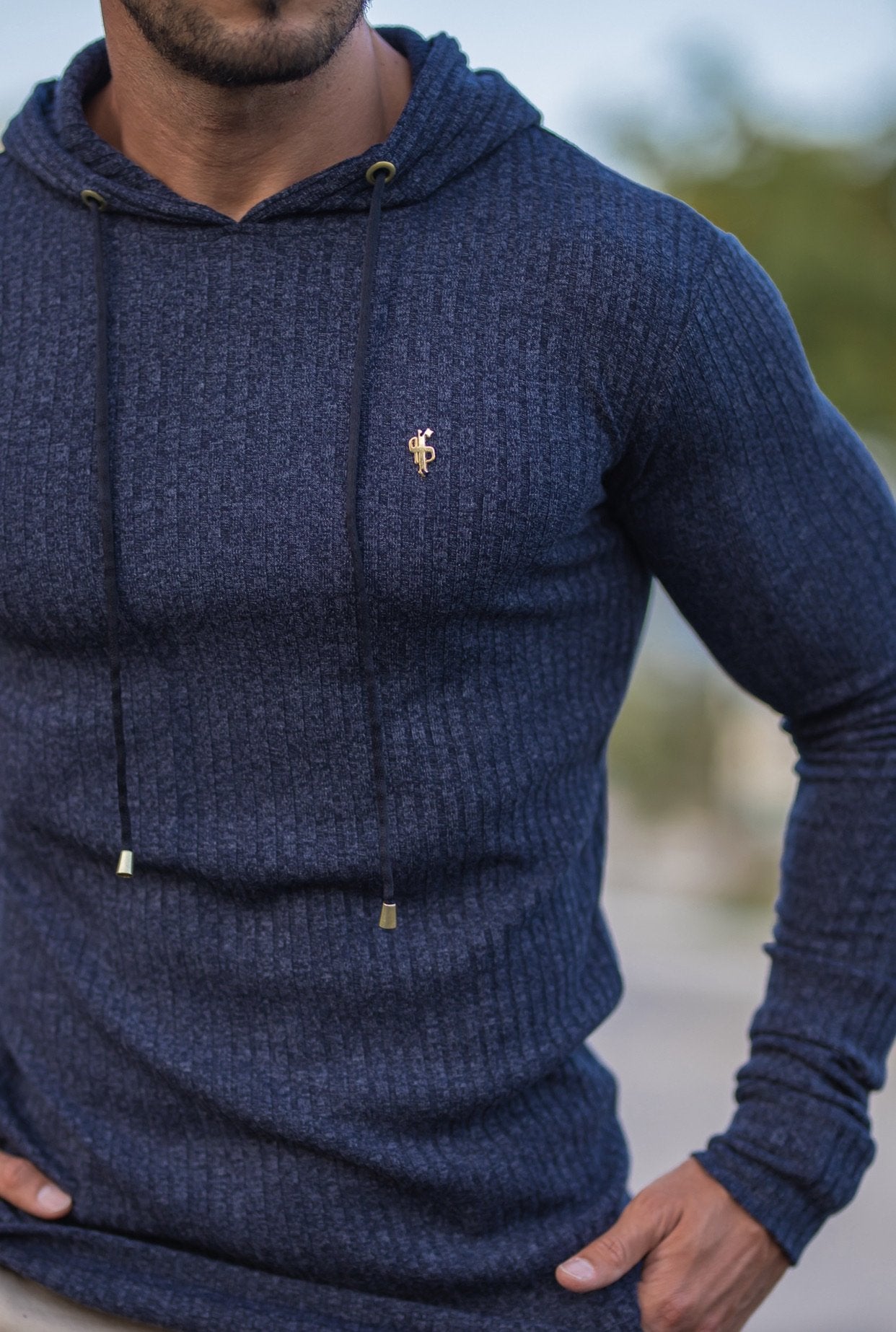 Father Sons Classic Navy / Gold Ribbed Knit Hoodie Jumper - FSH506