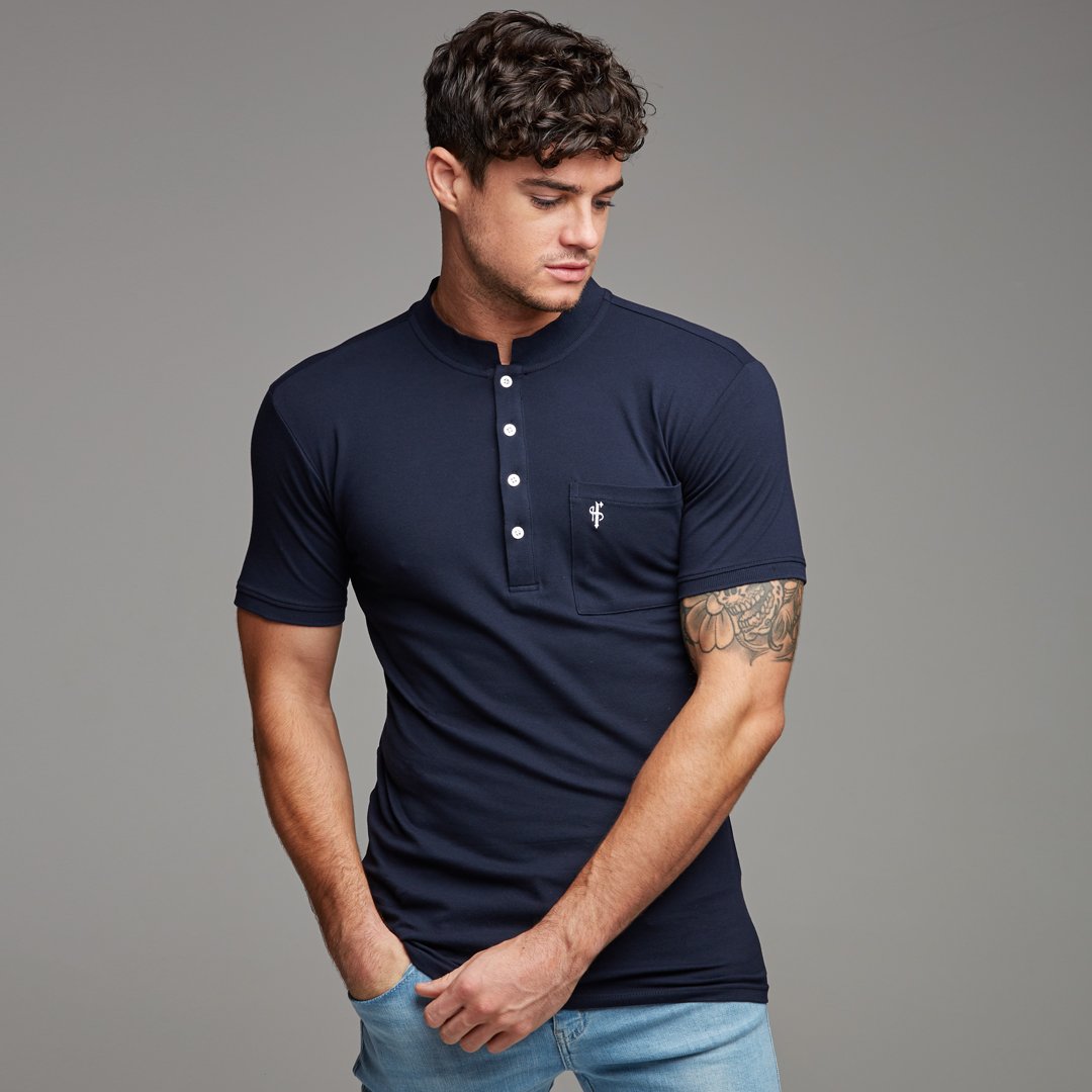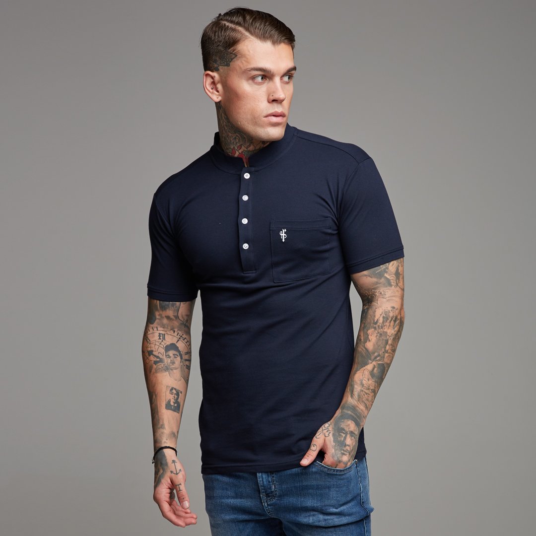 Father Sons Classic Navy Grandad Polo Shirt - FSH194