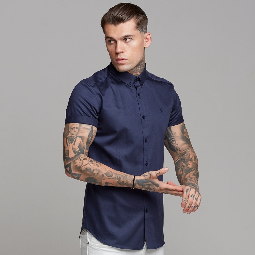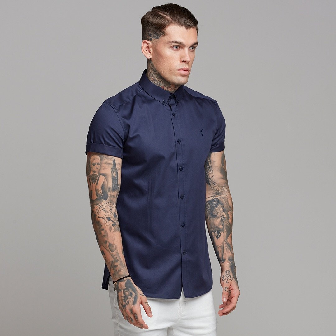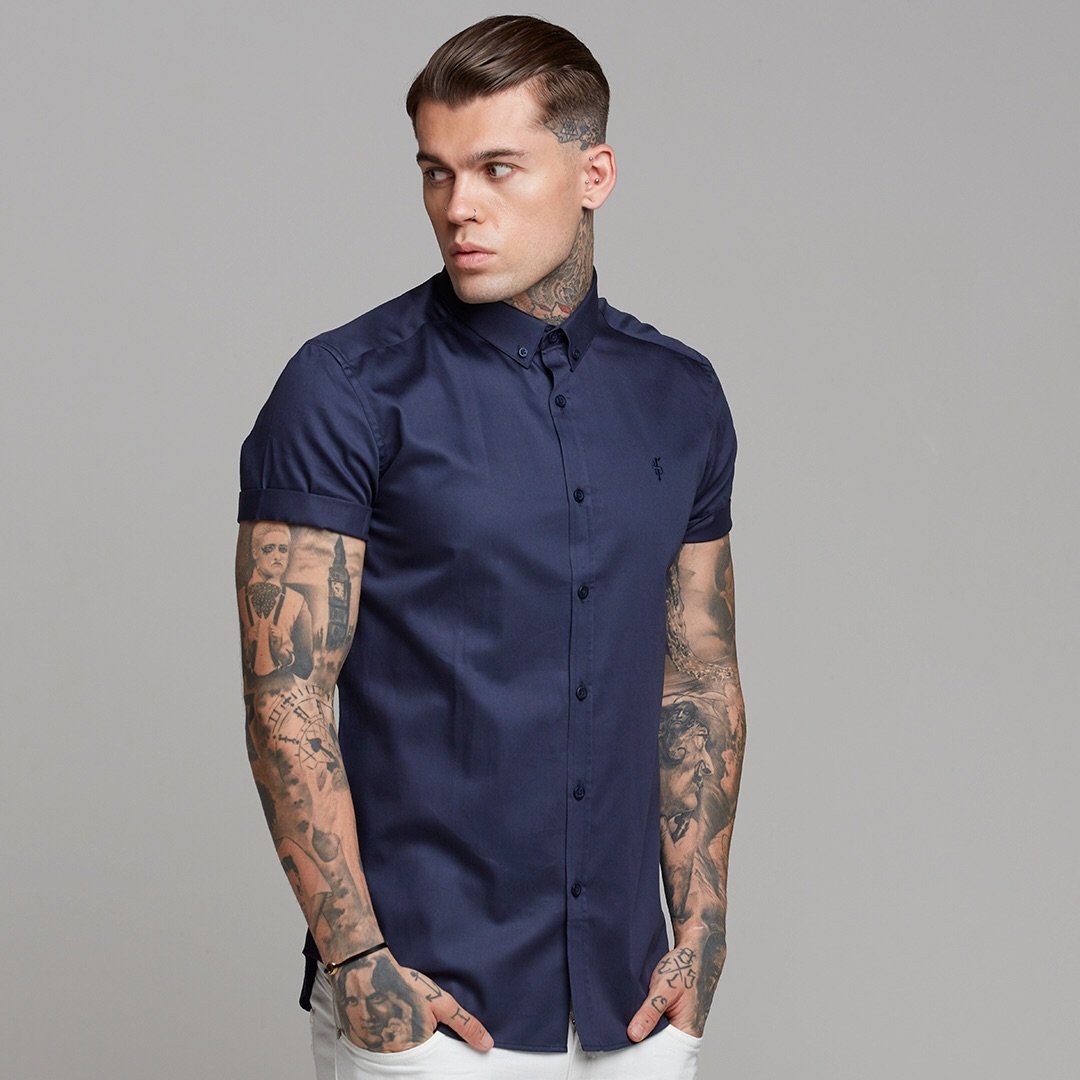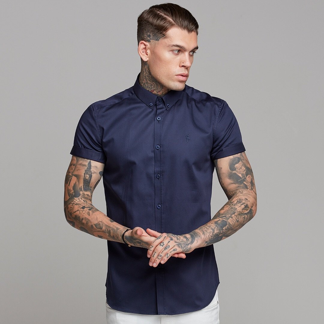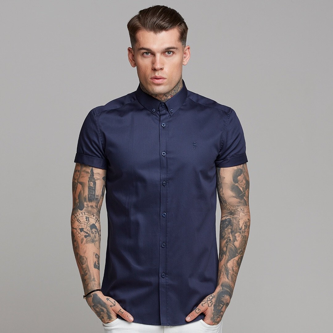 Father Sons Classic Navy Luxe Egyptian Cotton Button Down Collar Shirt Sleeve - FS500