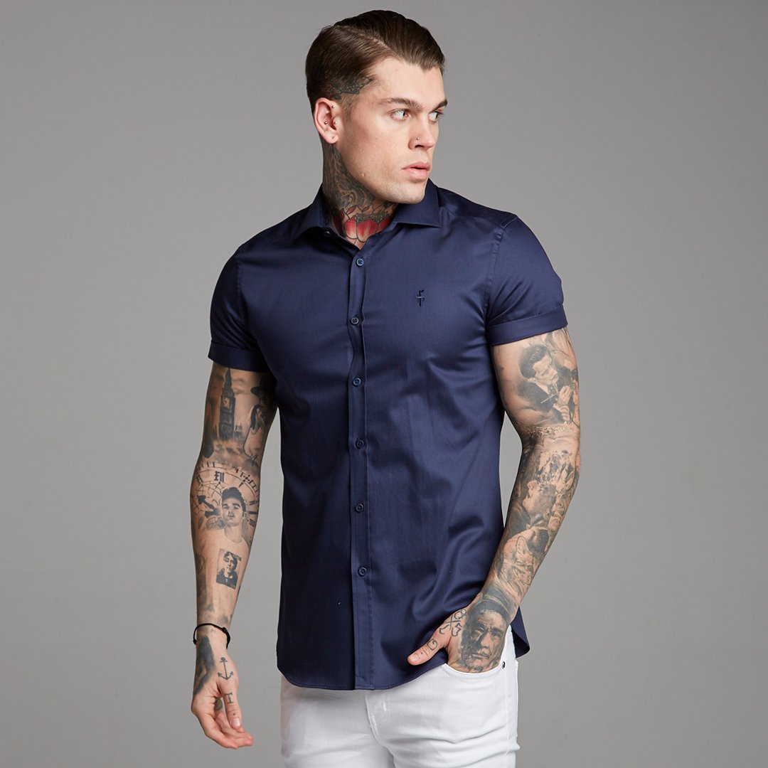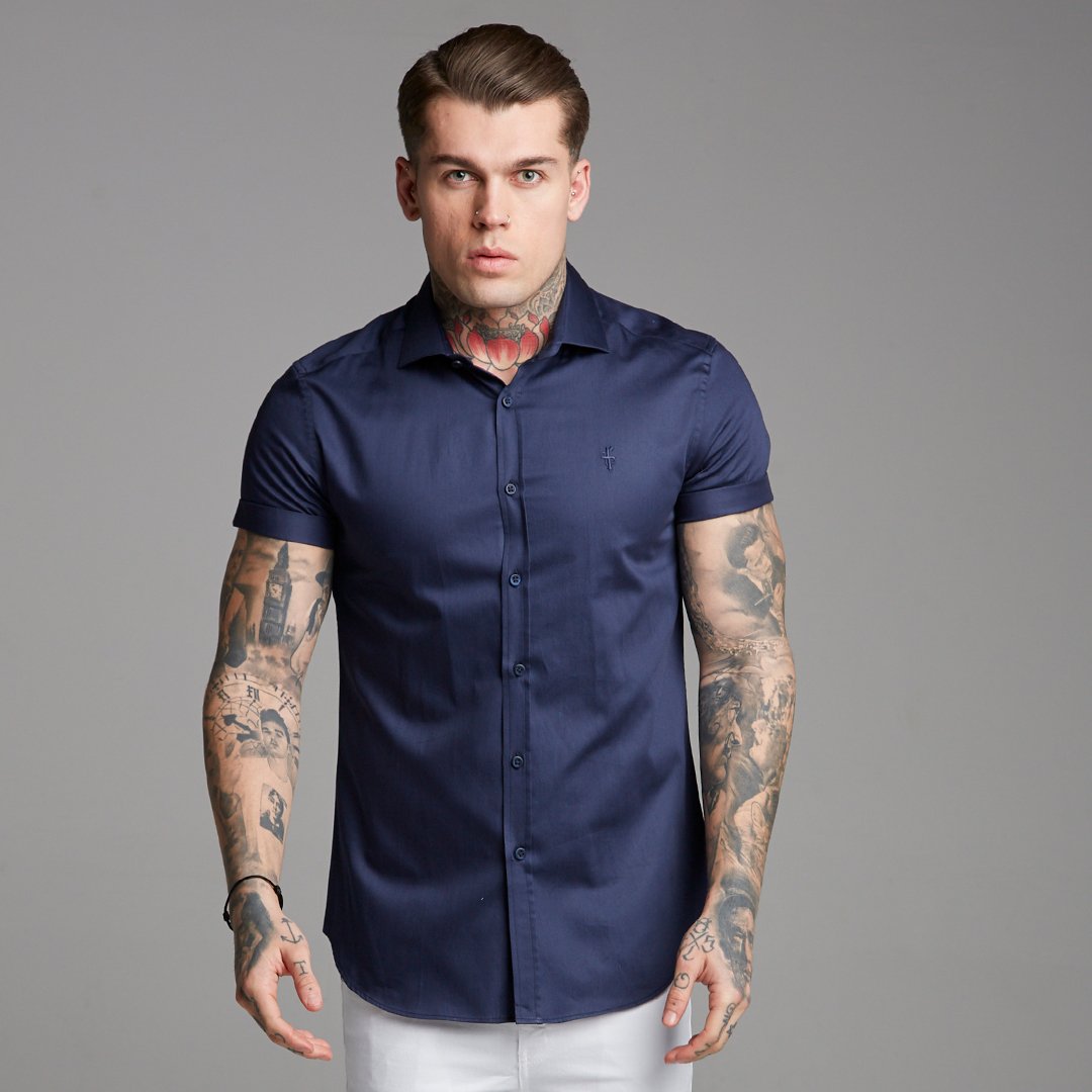 Father Sons Classic Navy Luxe Egytian Cotton Short Sleeve - FS374