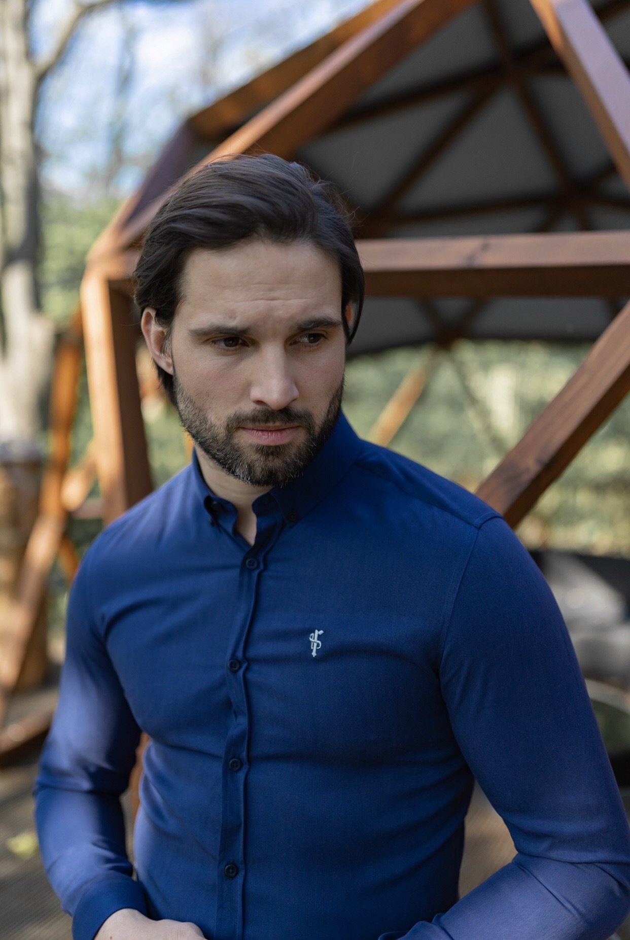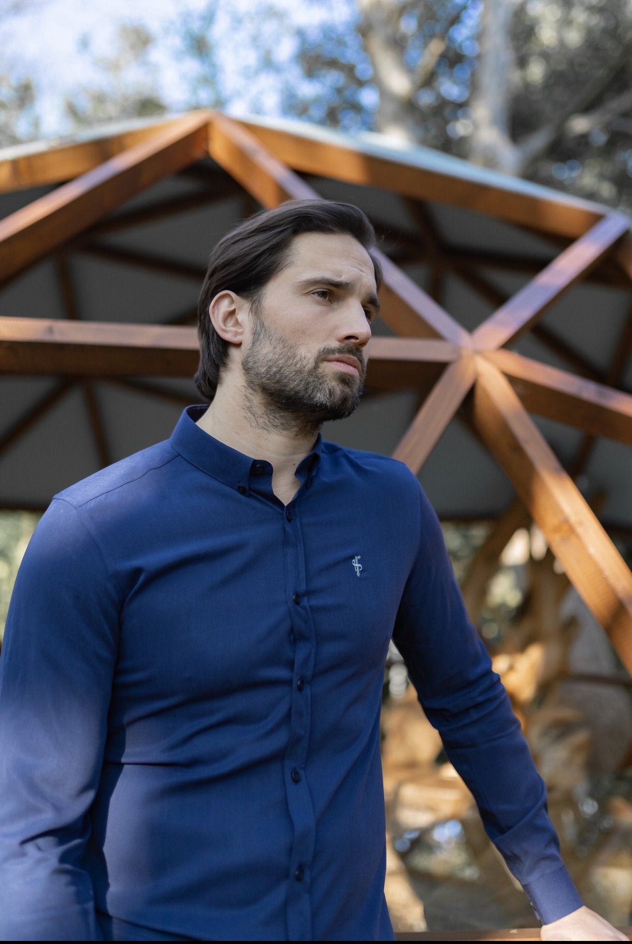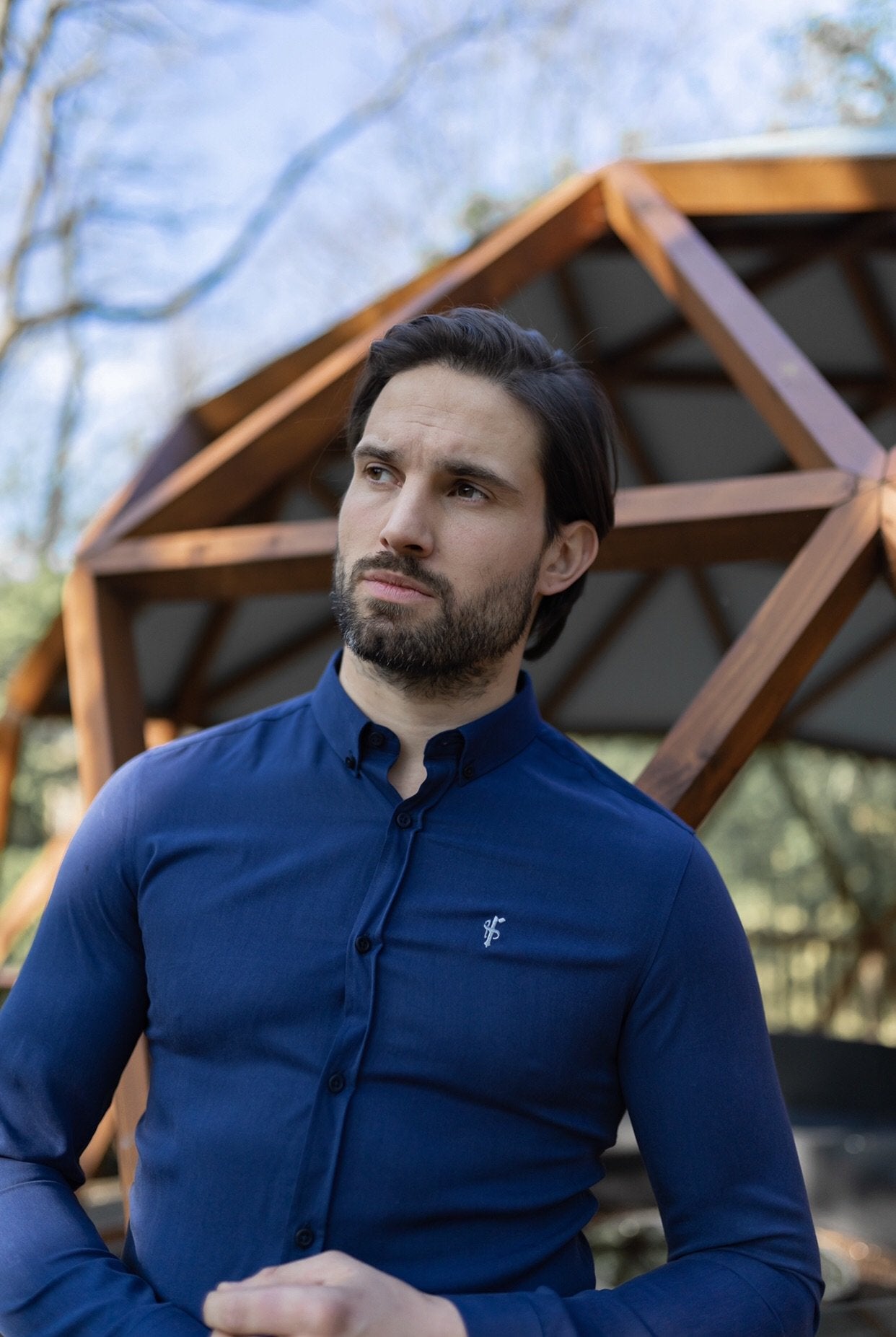 Father Sons Classic Navy Lyocell Long Sleeve (Blue Emblem) - FS467