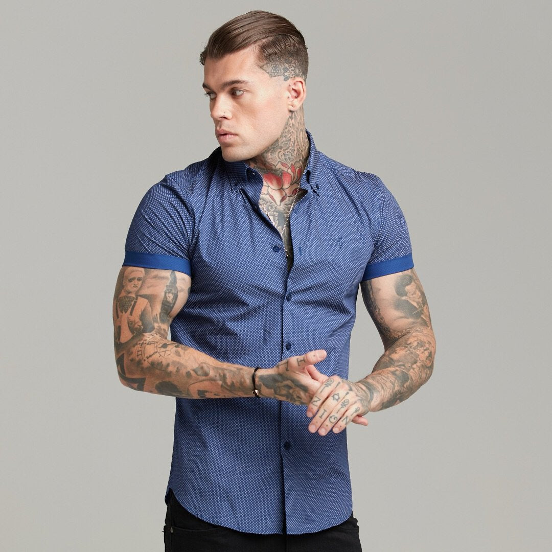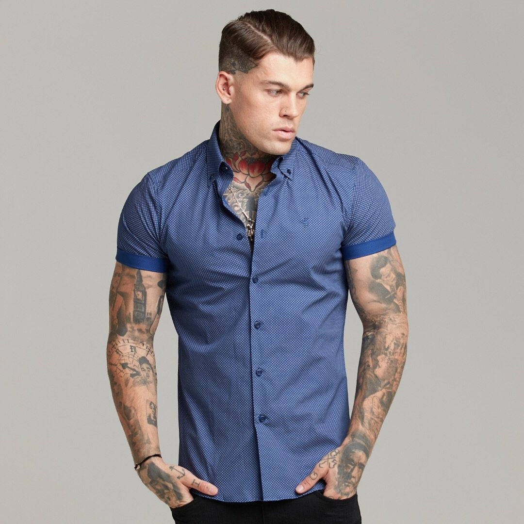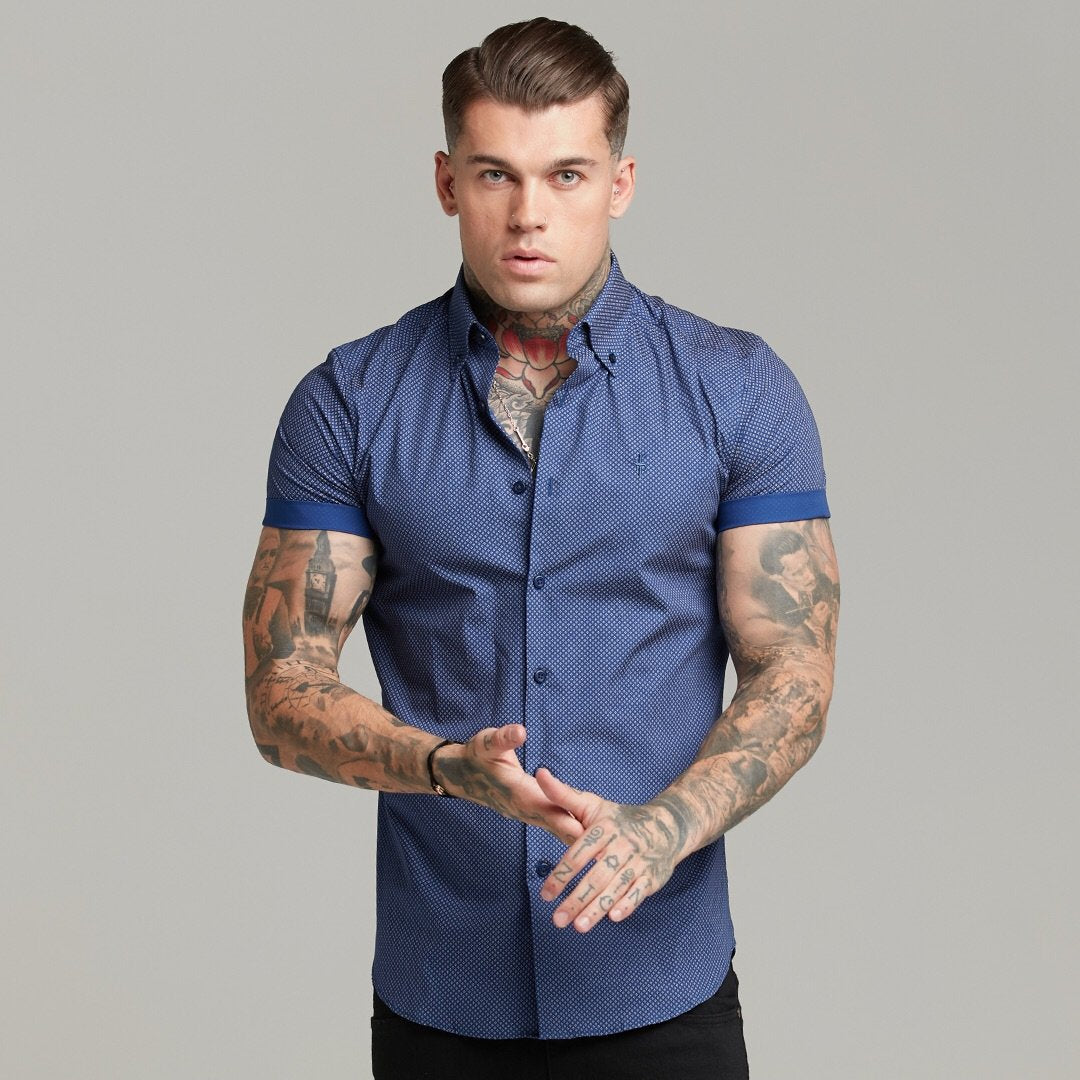 Father Sons Classic Navy Print Short Sleeve Button Down - FS607