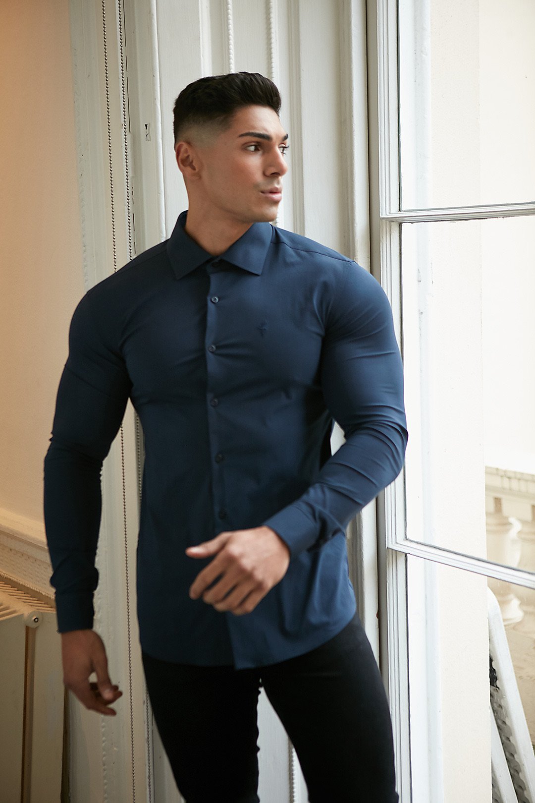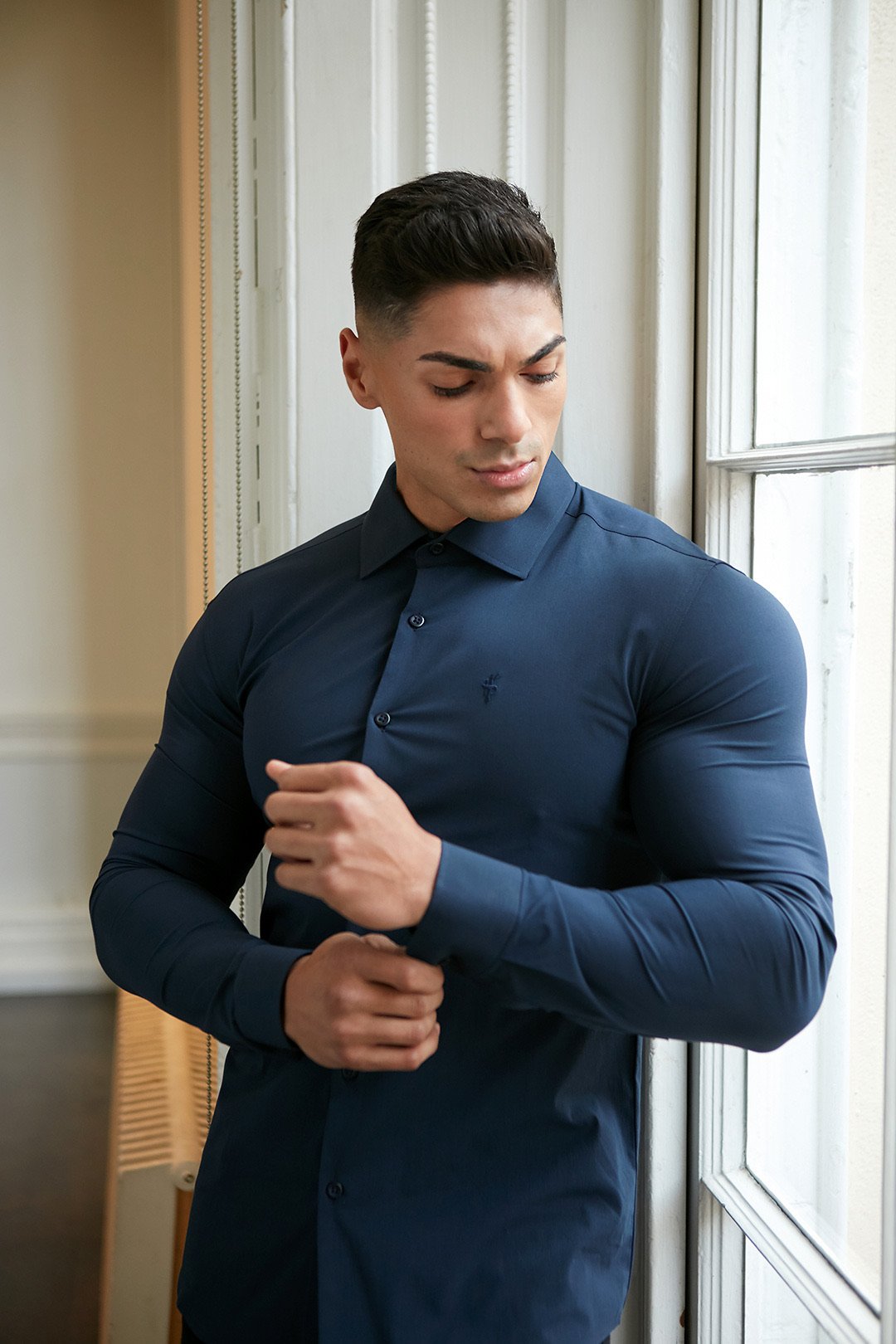 Father Sons Classic Navy Stretch Shirt with Cut Away Collar - FS567